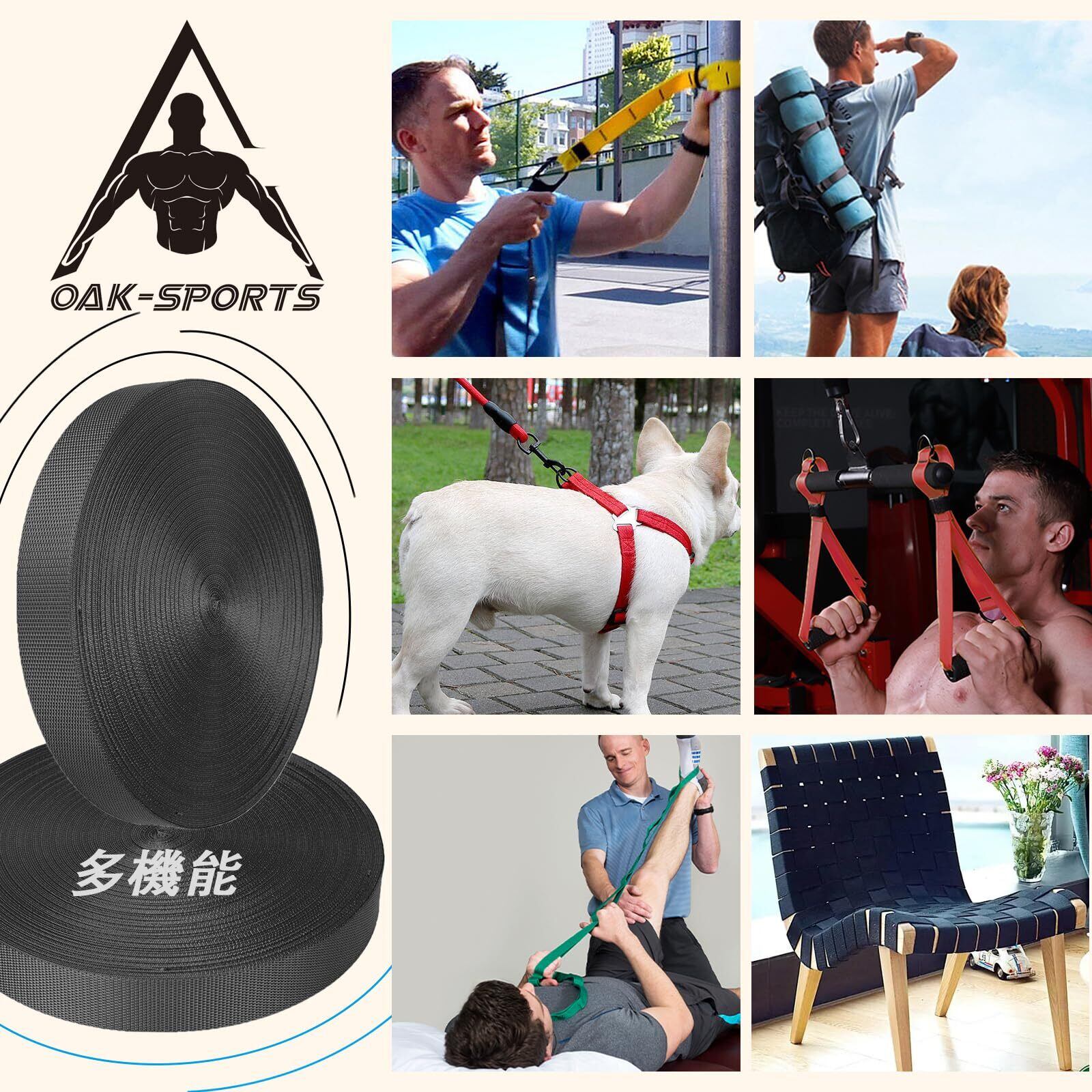 手作りや旅行用アクセサリーが好きなすべての男女にとって、Oak-Sportsブランドのカバンテープは最適な選択です!想像力を自由に解き放ち、ペット用リード、首輪、ベルト、ハンドバッグ、リュックサックのハンモックストラップ、犬のリード、安全な荷物、椅子の織り紐などを縫い上げましょう。