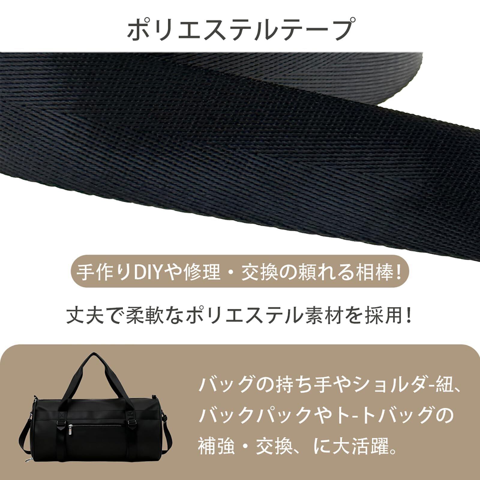 【数量限定】カバンテープ 16mm/19mm/25mm/32mm/38mm/50mm黒 厚さ1.2mm×長さ5.5m巻 ポリエステル 室内または屋外装備に適した耐久性カバンテープ、手作りDIY製作、修理 (幅19mm 黒)