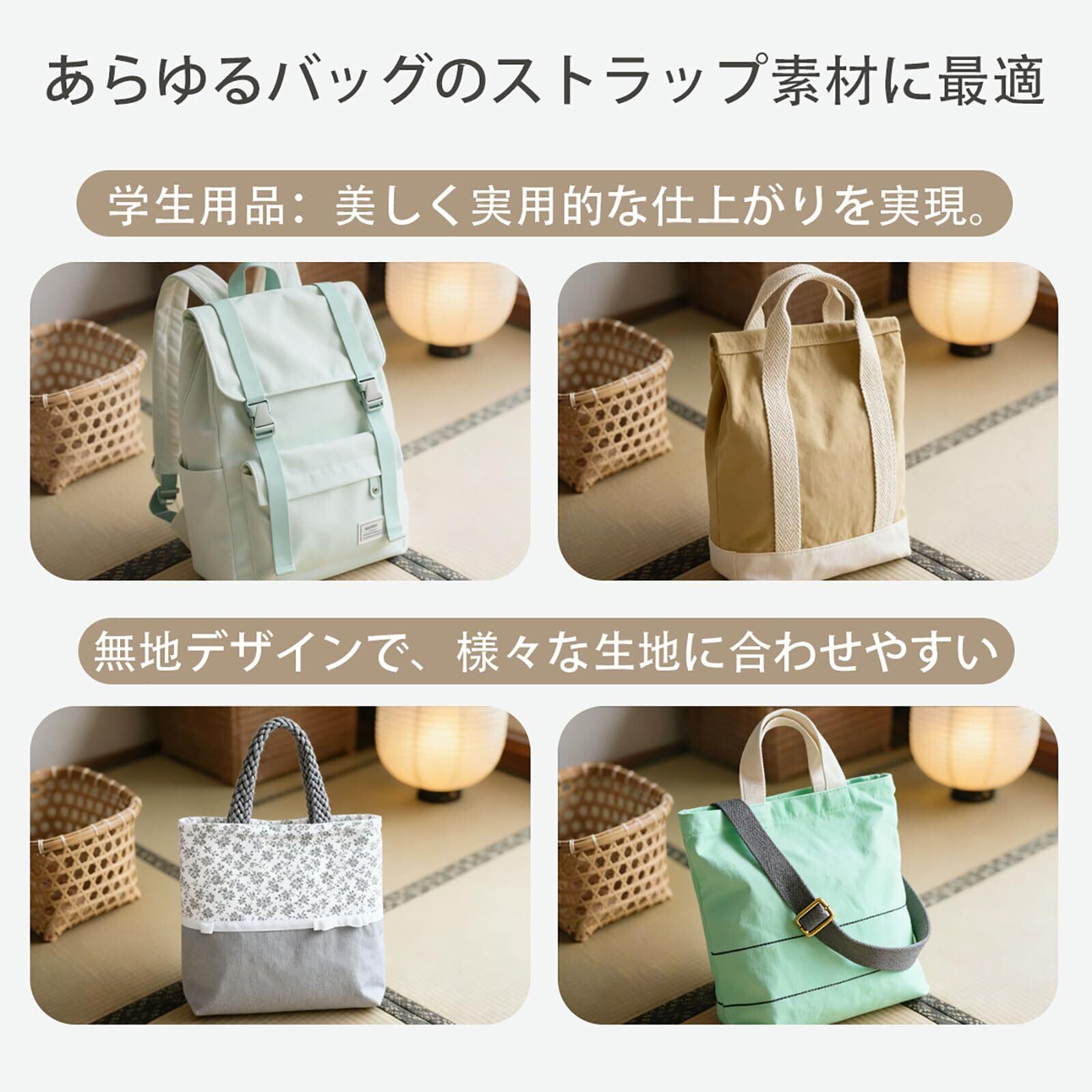 サイズ:幅19mm×5.5m,厚さ約1.2mm、柔らかく縫製しやすい素材です。学生用品、バッグの取っ手、リュックのショルダーストラップ、カメラストラップ、肩掛けストラップ、ペット用品などに適しています。用途に応じてお選びください。ご注意:原材料のロット差により、ベルトの厚さに1~2mmの誤差が生じる場合があります。ご了承くださいの上、ご注文ください。
