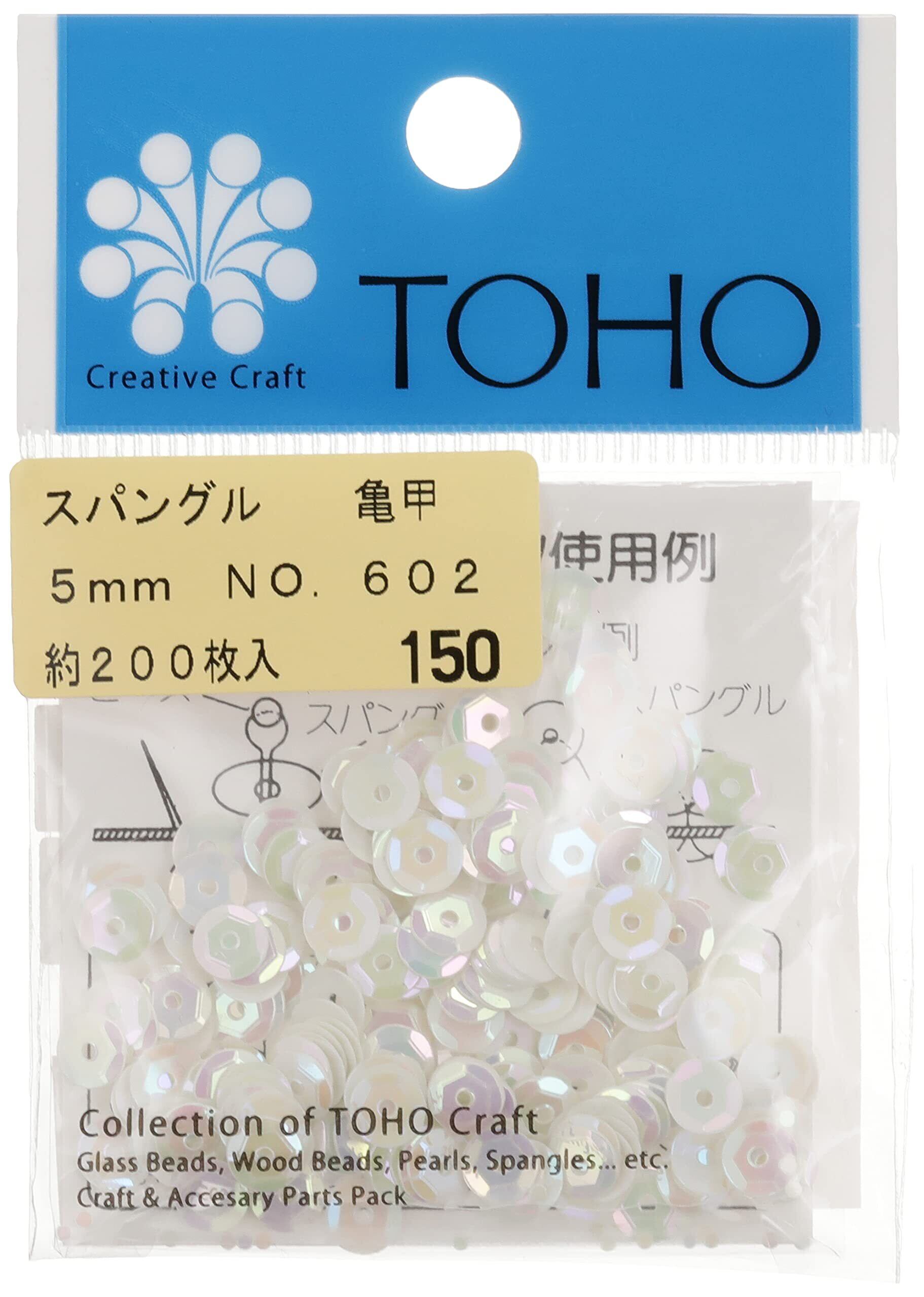 【2022最新】TOHO スパングル 亀甲 約5mm ホワイトオーロラ 約200枚入り No.602