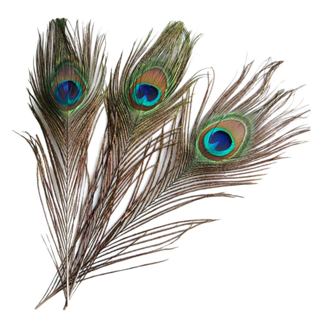 羽根 目玉羽 装飾用の羽根 孔雀の羽 23-33cm 10本