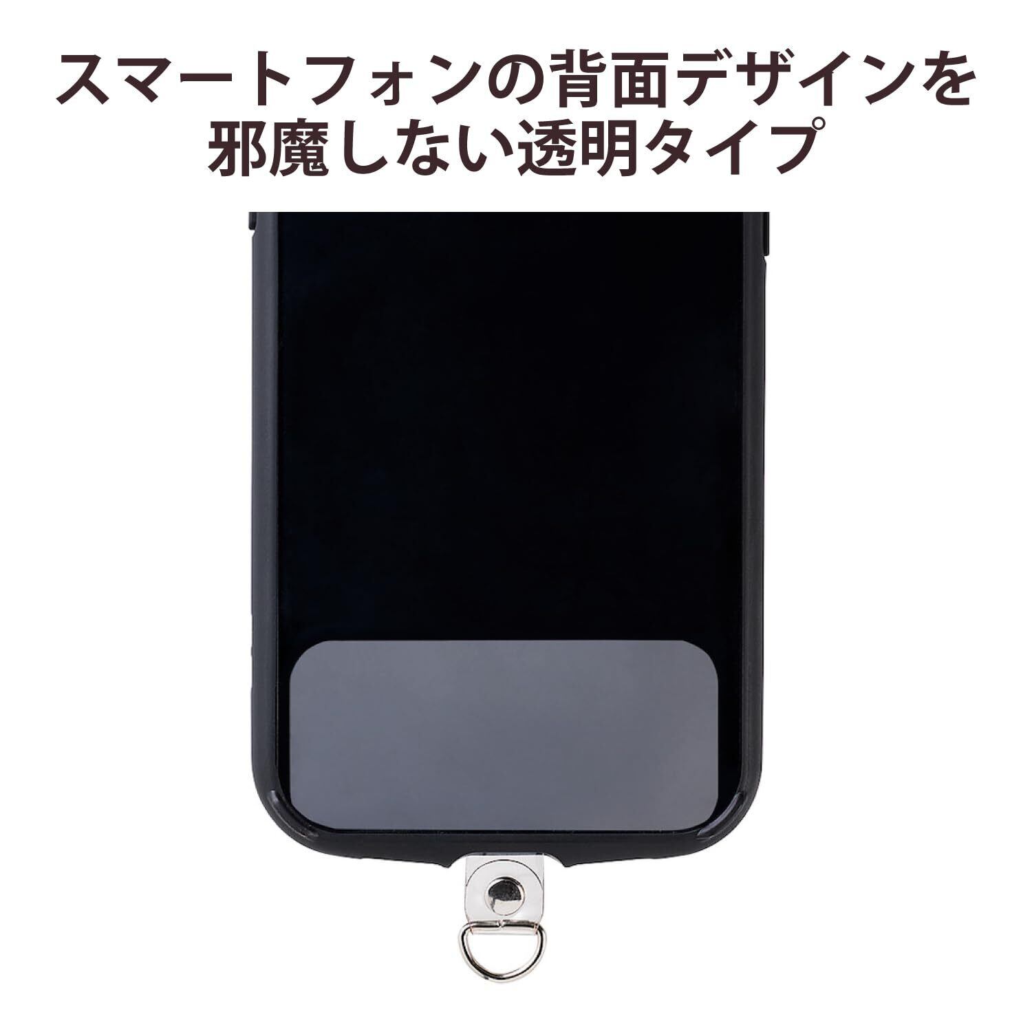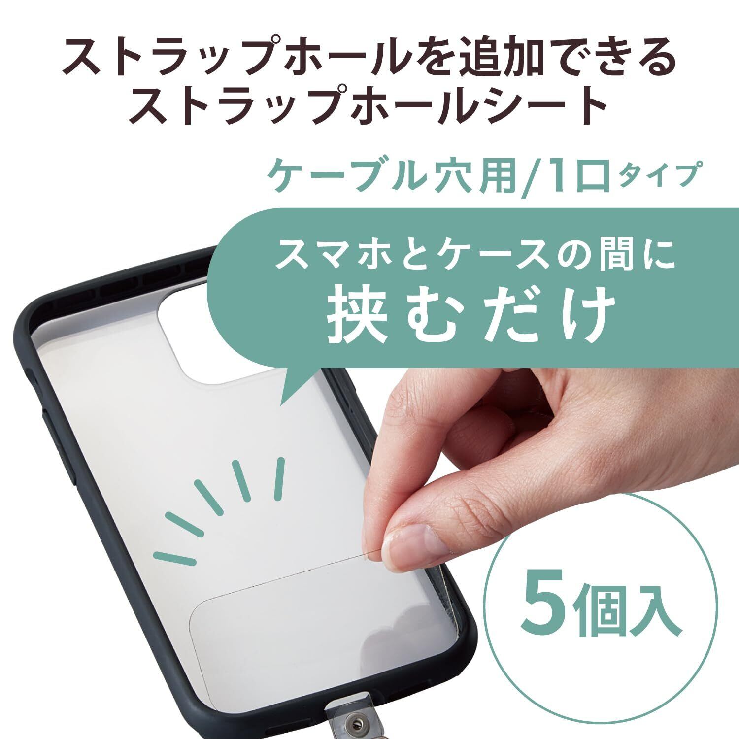 ■スマートフォンとケースの間に挟むだけでストラップホールを追加できる、1口タイプのストラップホールシートです。