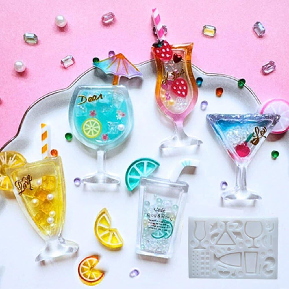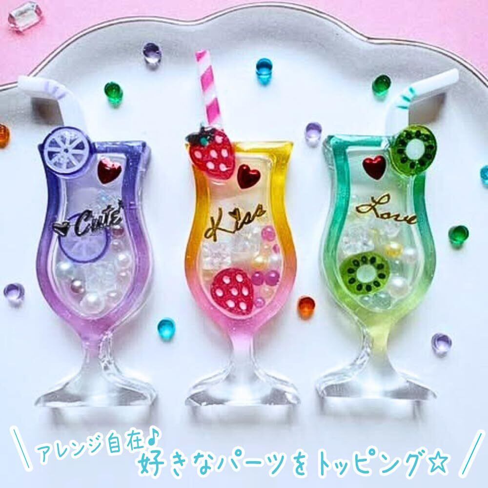 【商品について】かわいいドリンクモチーフのシャカシャカが作れるシリコンモールドです。5種類のグラスといちご・オレンジ・キウイ・さくらんぼ・パイン等のフルーツ、氷やハーブの葉っぱ・ストロー・パラソルの飾り等のパーツも沢山作れてアレンジ自在なモールドですキーホルダーにもピッタリのサイズ感です。お子さまもみんな大好きな可愛い作品が作れます。プレゼントにも最適です鏡面仕上げでツルツルの綺麗な作品が作れます。半透明でデザインも確認しやすい高品質なシリコンモールドです。丈夫で柔らかく取り出しやすく、初心者の方でも簡単に取り外せます、 UVレジン、エポキシ樹脂、樹脂粘土などにご利用いただけます。