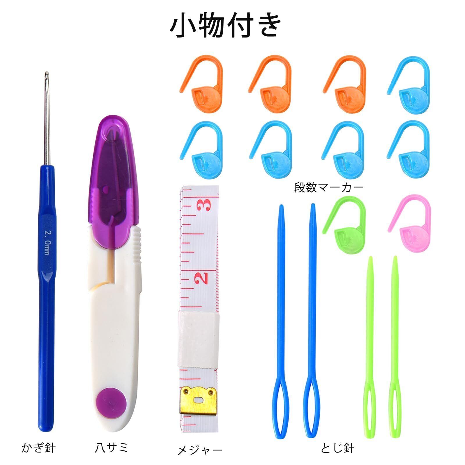 【セット内容】:輪針は18本、またかぎ針1本、メジャー1本、ハサミ1本、とじ針4本、段数マーカー12個を贈ります。それぞれの輪針はサイズが刻印されて、サイズを見分けることは簡単です。