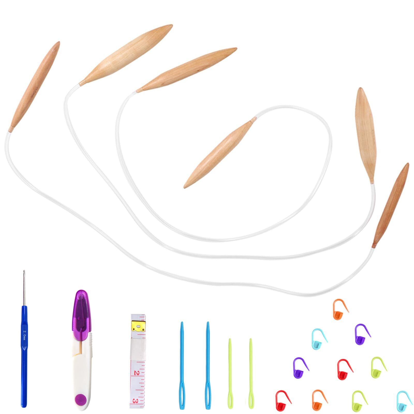 輪針 ジャンボ輪針 15mm 20mm 25mm 3本セット 木製の輪針 編み針 棒針 編み棒 手編み道具 かぎ針 段数マーカー とじ針 メジャー付き 超極太輪針セット