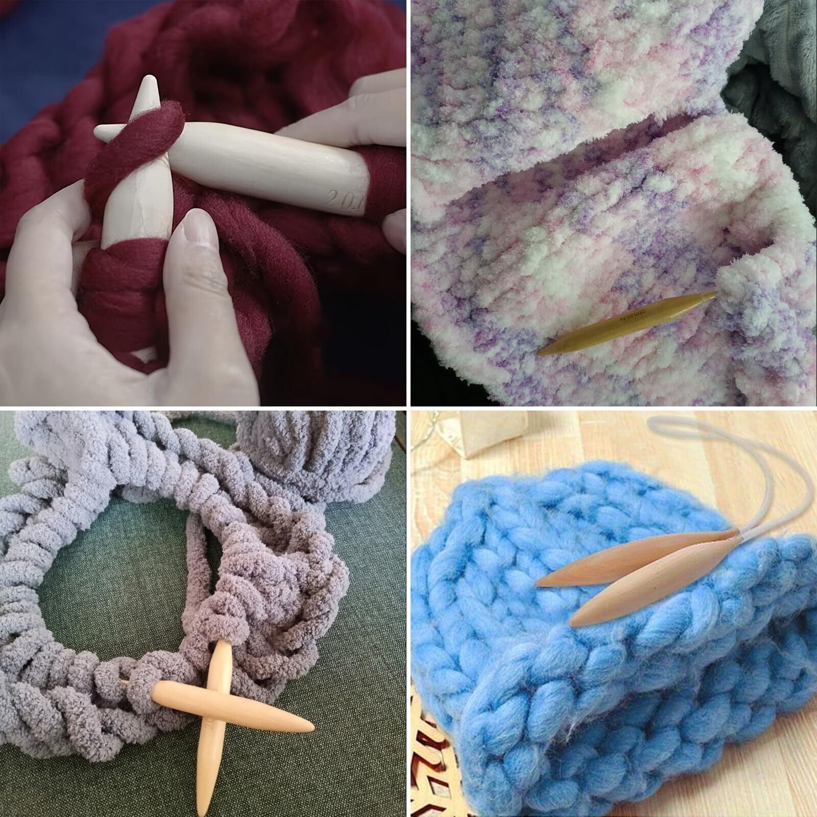 【高品質の材質】ジャンボ輪針は高品質の木材で作られており、軽量で耐久性に優れています。極太の毛糸で作る作品に適しており、使用感は結構良いです