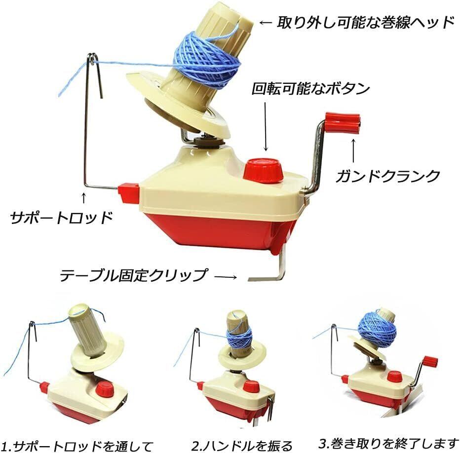玉巻き器, ポータブル手糸巻き機ボール 家庭用糸玉ワインダー手巻き機 使いやすい 編み物キット 手芸用品 + はさみ