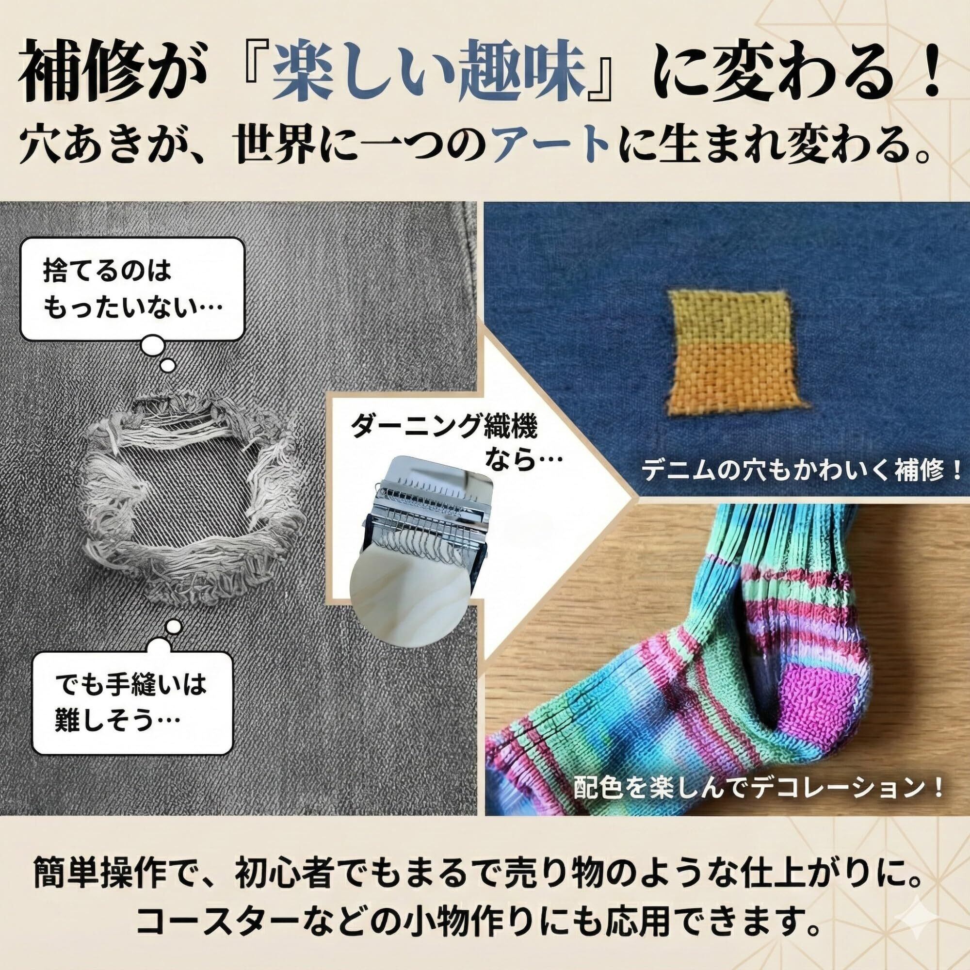 【新春セール】ダーニング 織り機 日本語説明書 動画付き 補修キット 手芸 ハンドメイド 織機 (14針)