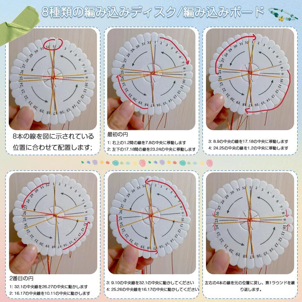 【新春セール】組み紐 ディクス 組ひもディスク 組紐キット 4本セット DIY 編み込みネックレス 織り使いやすいツール ボード編組コード 編み物工具 再利用可能 携帯ストラップ ギフトカワイイ 初心者 クラフト愛好家 贈り物(丸いロープブレード2pcs+四角いロープブレード2pcs)