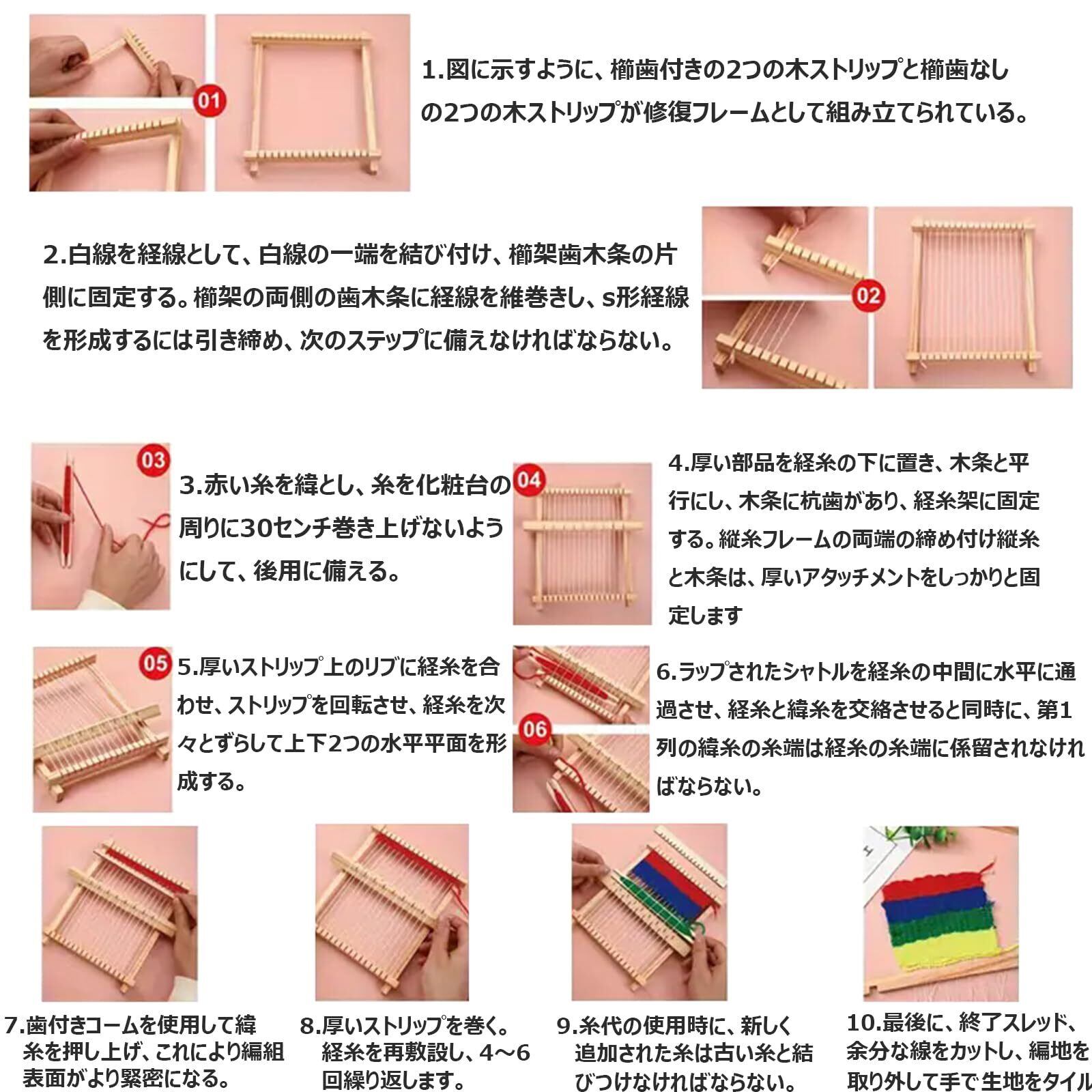【素材】:この織機は高品質の木材で作られており、耐久性と寿命を保証します。設置が簡単な織機です。