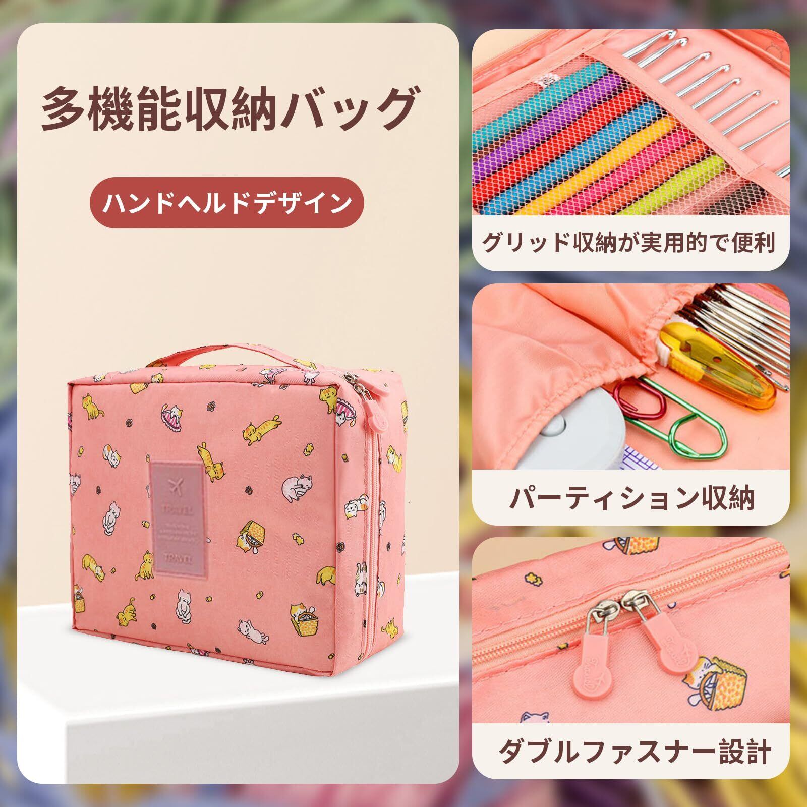 【ボックス付きかぎ針編みキット】:ポケットとメッシュコンパートメントを備えたジッパー付き収納バッグに、すべての部品がすっきりと収まり、鋭利な道具を保護し、不慮の怪我を防ぎます。この収納バッグのコンパクトなデザインと便利なハンドヘルドデザインは、アウトドア旅行の針編みや多機能収納アイテムにぴったりです。