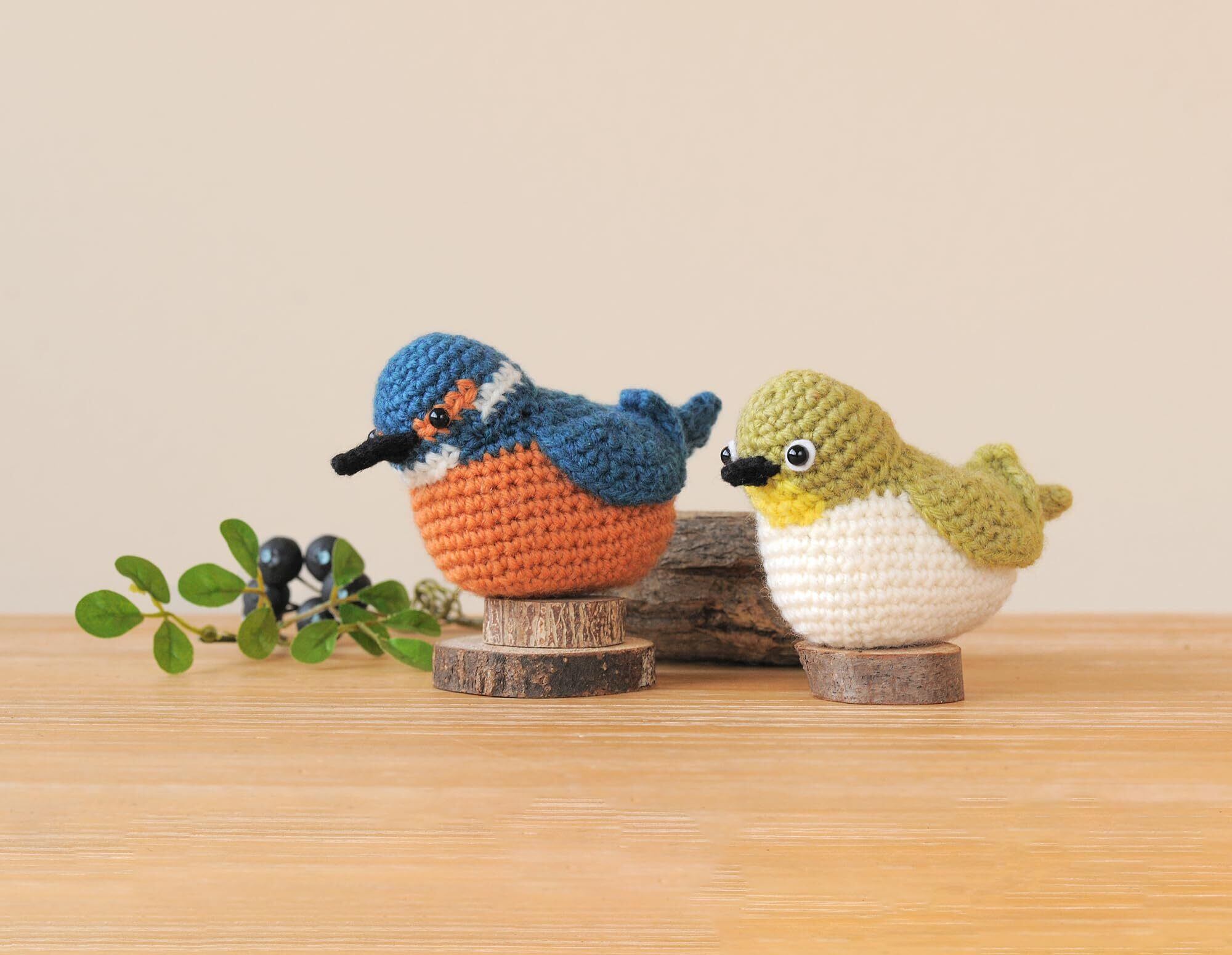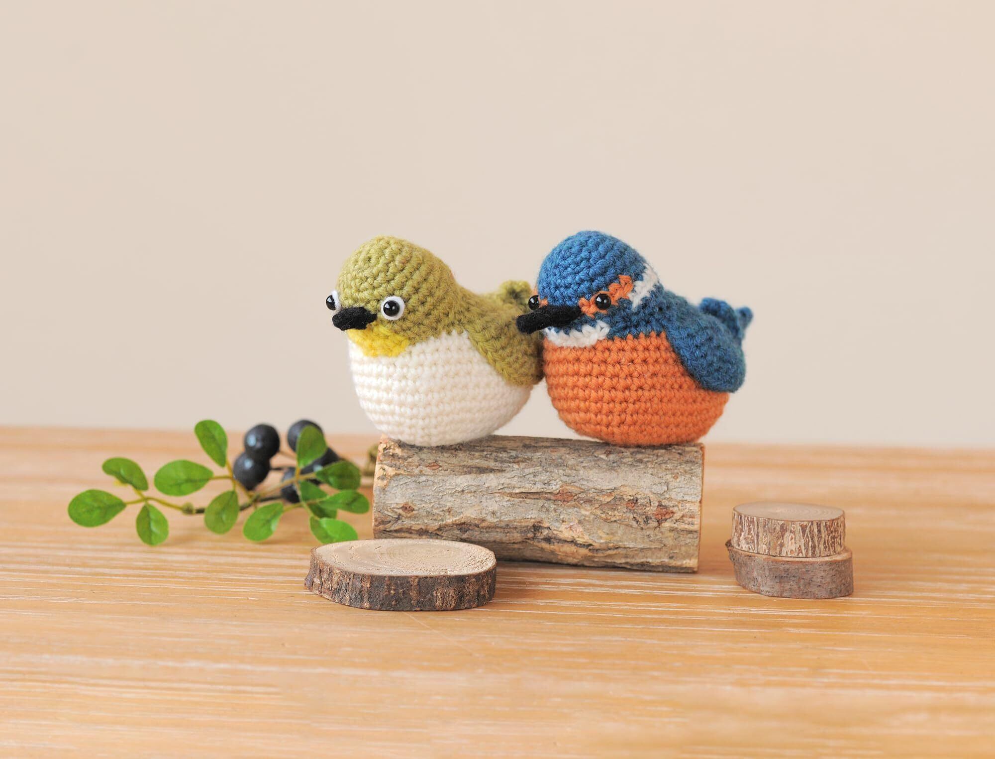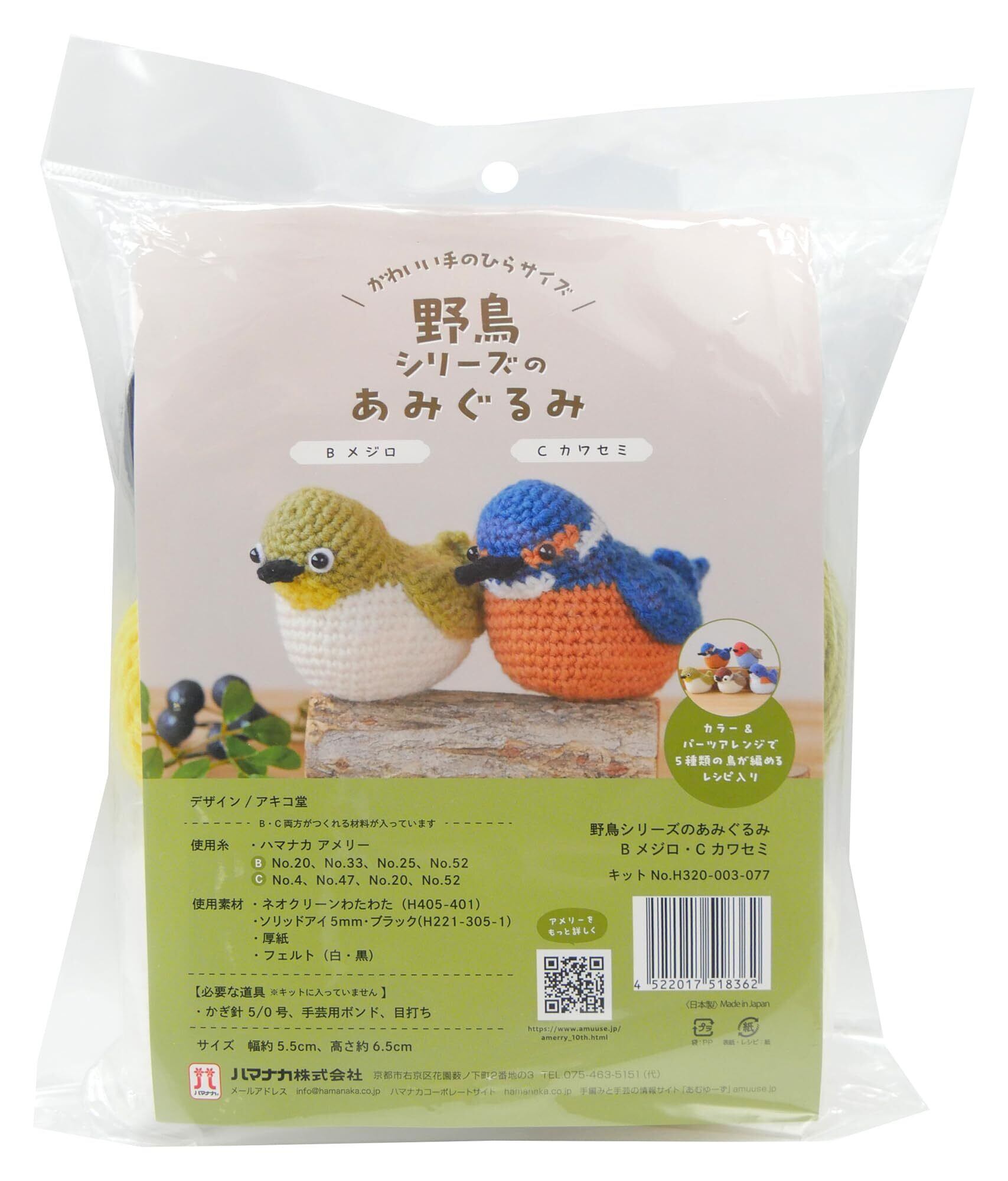ハマナカ あみものキット 野鳥 シリーズの あみぐるみ (ハマナカ アメリー 使用) B メジロ C カワセミ (サイズ 約 幅5.5cm×高さ6.5cm) H320-003-077
