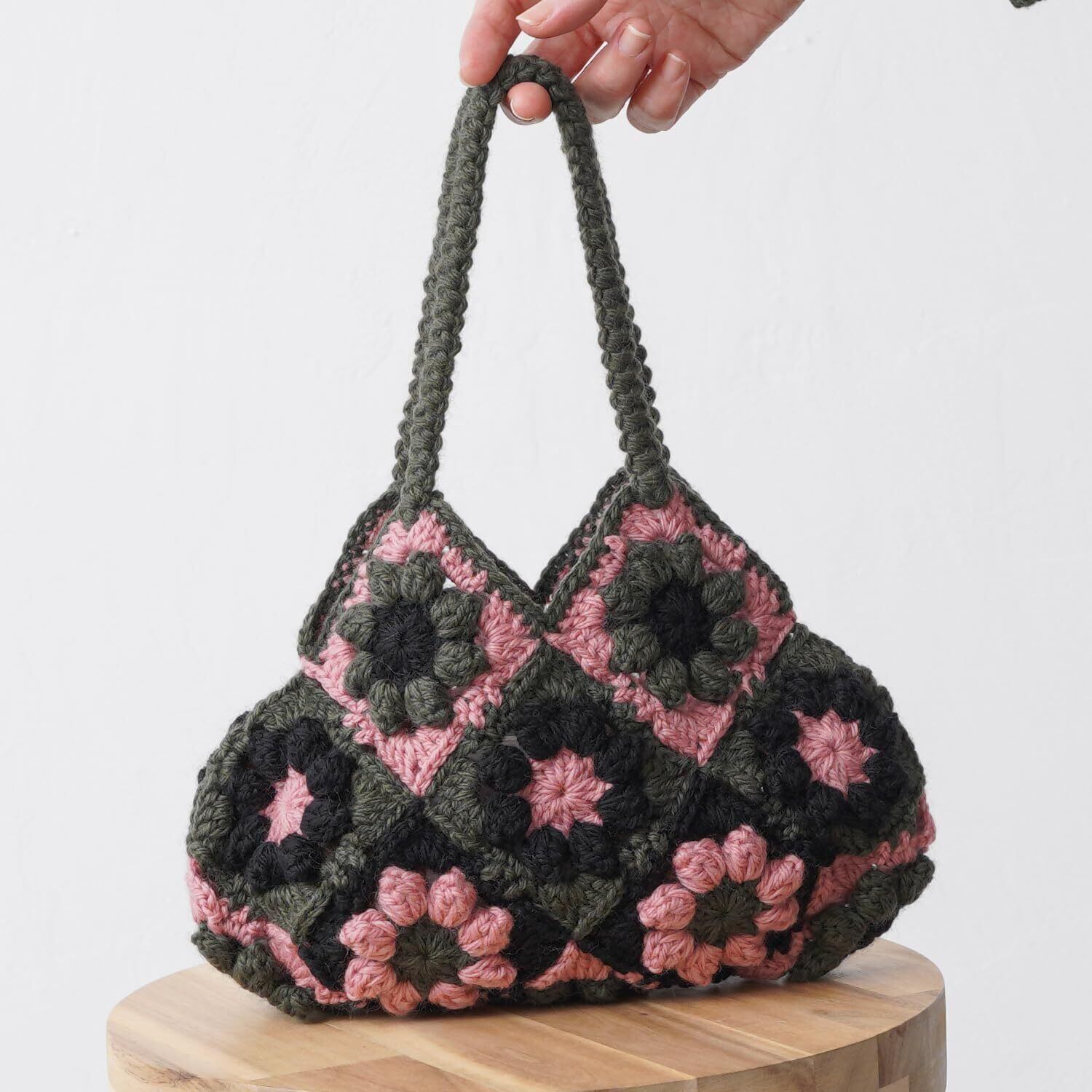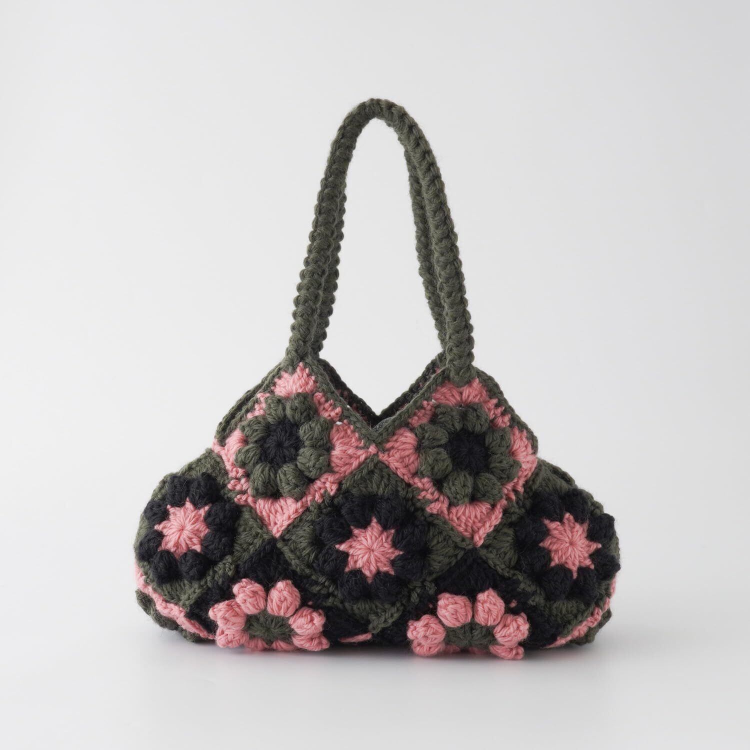 編み物キット #18-4 パプコーン編みモチーフのバッグと巾着