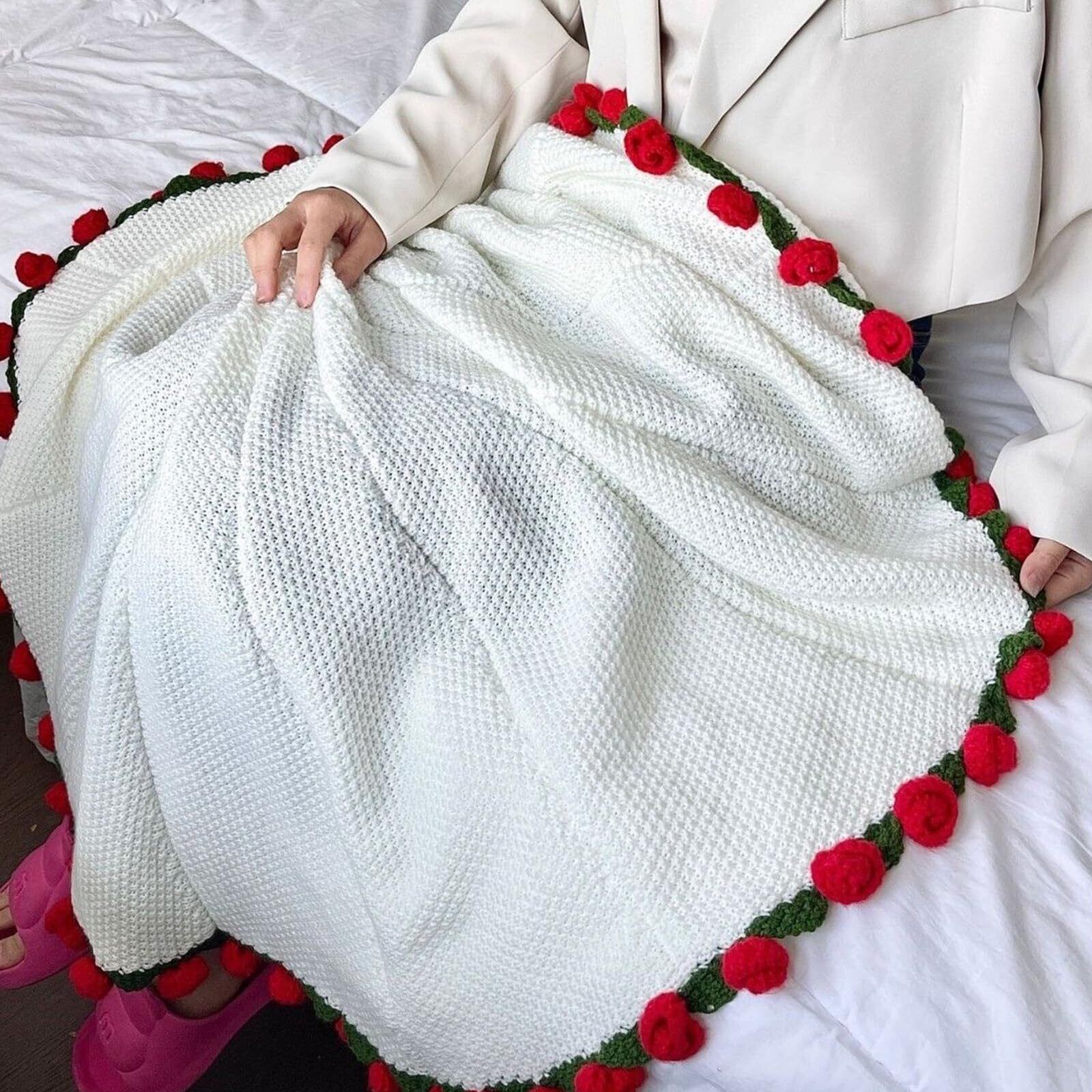 【万能な花の変身】この手作りのかぎ針編みのバラの花束ブランケットは、装飾の魔法としても機能します。心地よいニットスローから見事なバラの花束ディスプレイに簡単に変身します。ベッド、ソファ、またはDIYホームデコレーションに最適です。