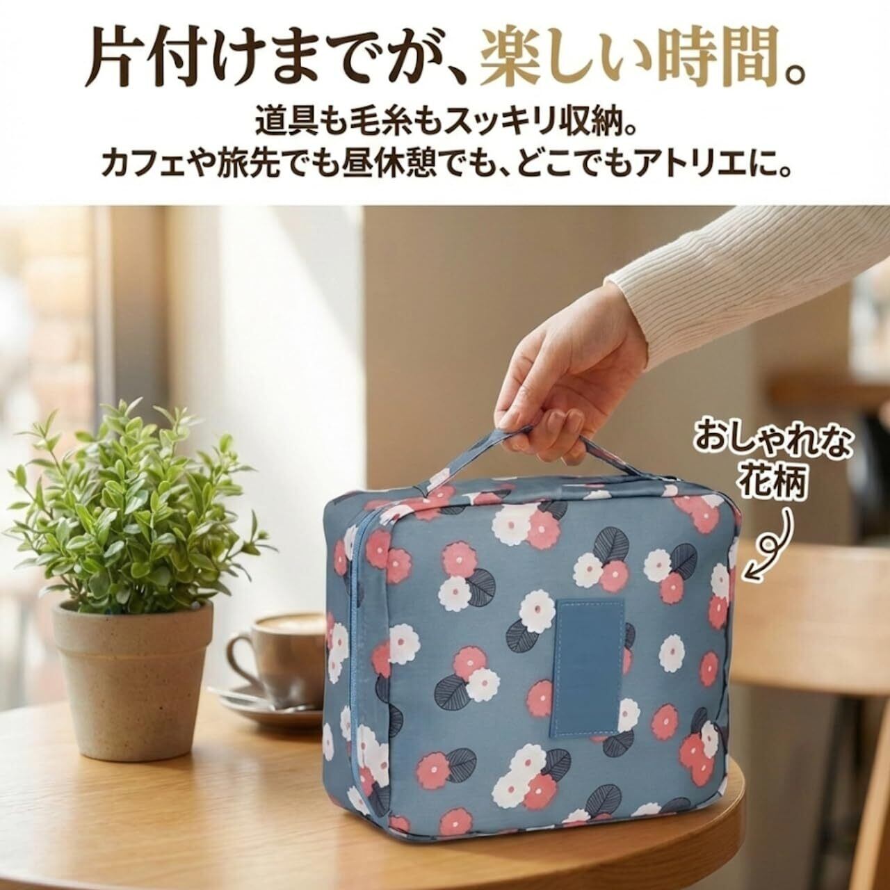 【整理整頓に便利な専用収納バッグ】 かわいらしい多機能バッグは、内部にメッシュ仕切りがあり、散らばりがちなハサミやピンなどの小さなパーツもすっきりと整理でき、旅行や外出先への持ち運びにも最適で、どこで開いても可愛いいアイテムです。