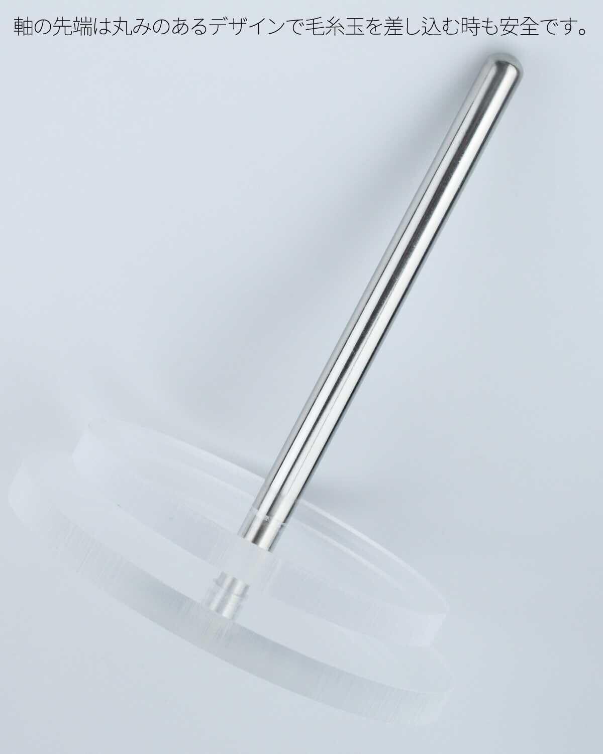 軸の先端は丸みのあるデザインで毛糸玉を差し込む時も安全です。土台が適度な重さを持つため、作業中も安定感があり快適です。