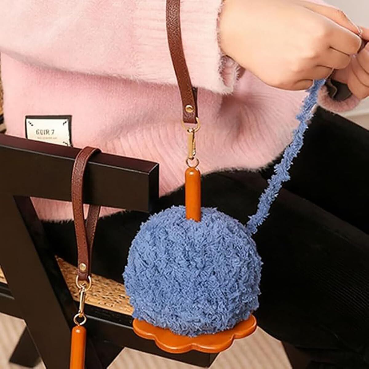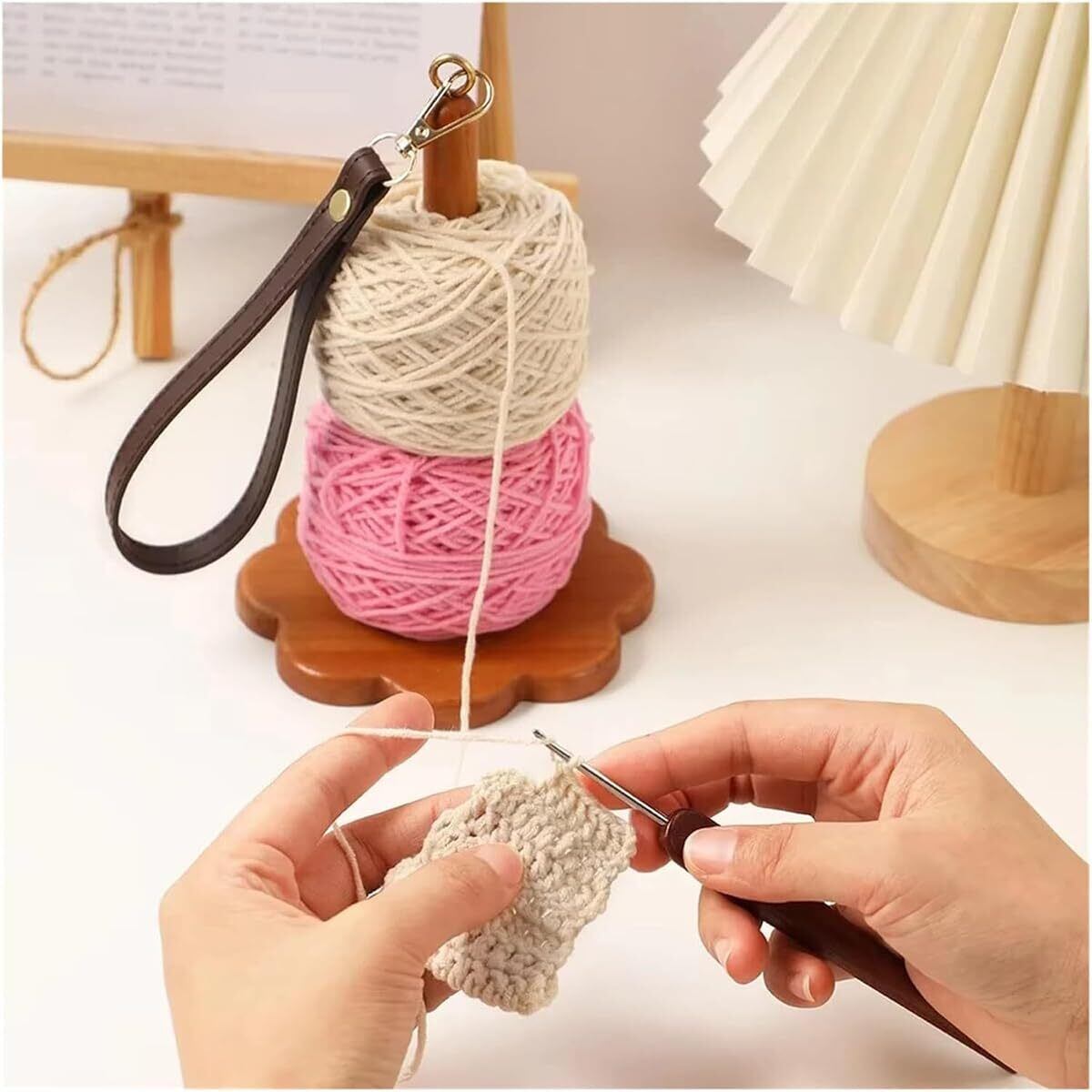 木製の毛糸ラック 12×12×19cm リストヤーンホルダー レザーリストバンド付き 補助ツール 回転式編み物スタンド 毛糸収納 使い方は簡単 レトロカラー