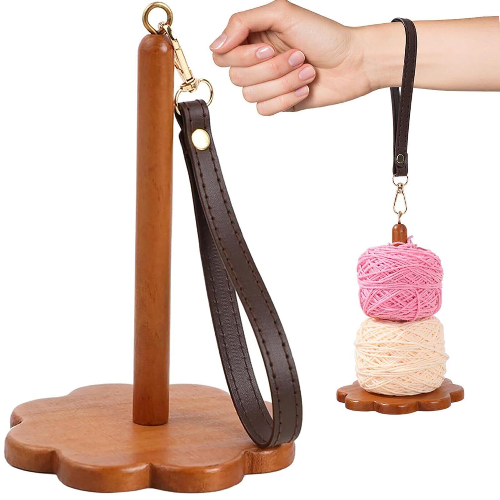 【新春セール】木製の毛糸ラック 12×12×19cm リストヤーンホルダー レザーリストバンド付き 補助ツール 回転式編み物スタンド 毛糸収納 使い方は簡単 レトロカラー