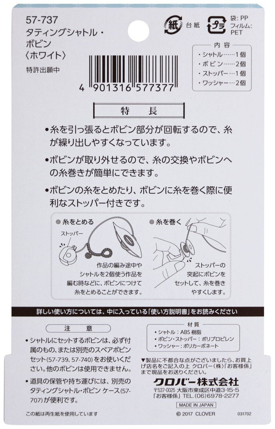 【新春セール】Clover タティングレース道具 タティングシャトル・ボビン ホワイト 57-737