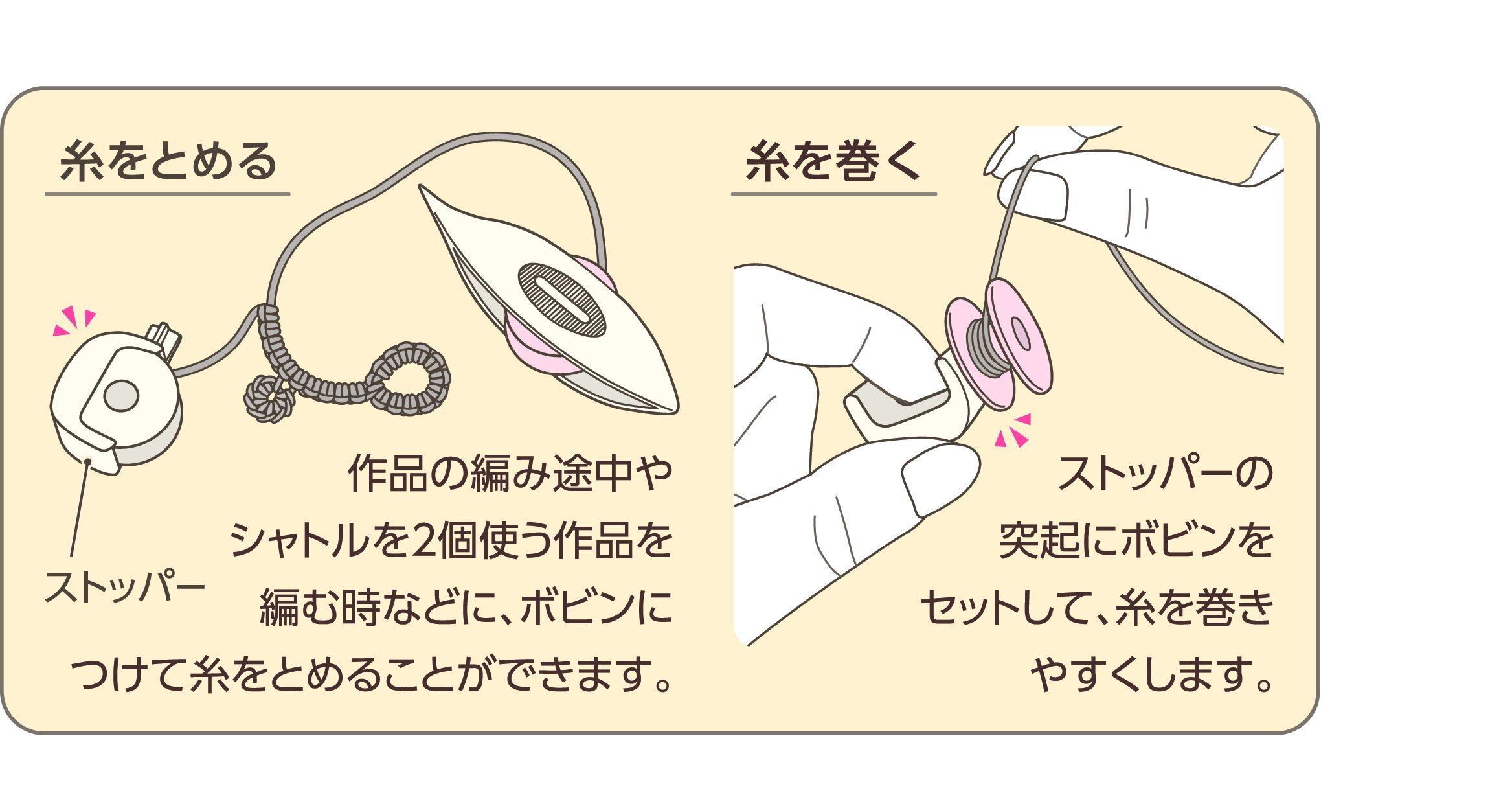 ※このボビンは、従来のタティングシャトルやシャトルLには取り付けることができません。