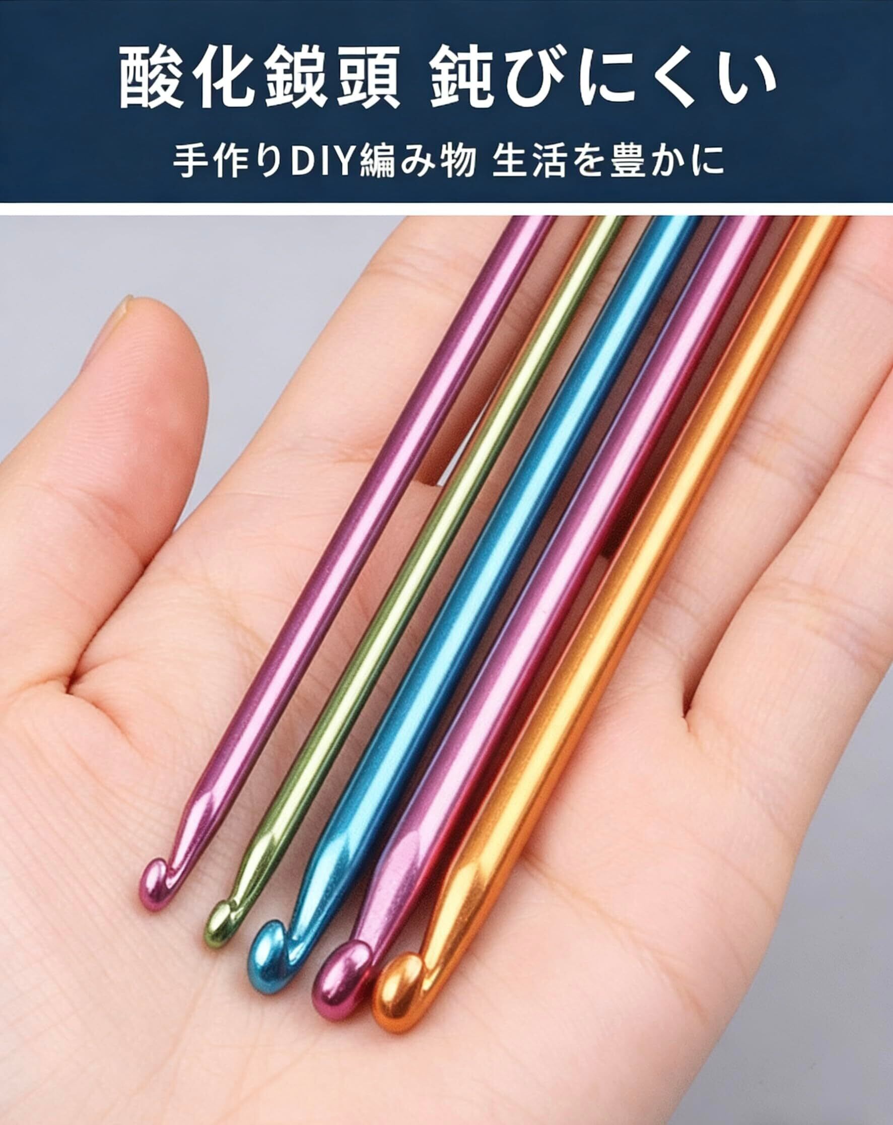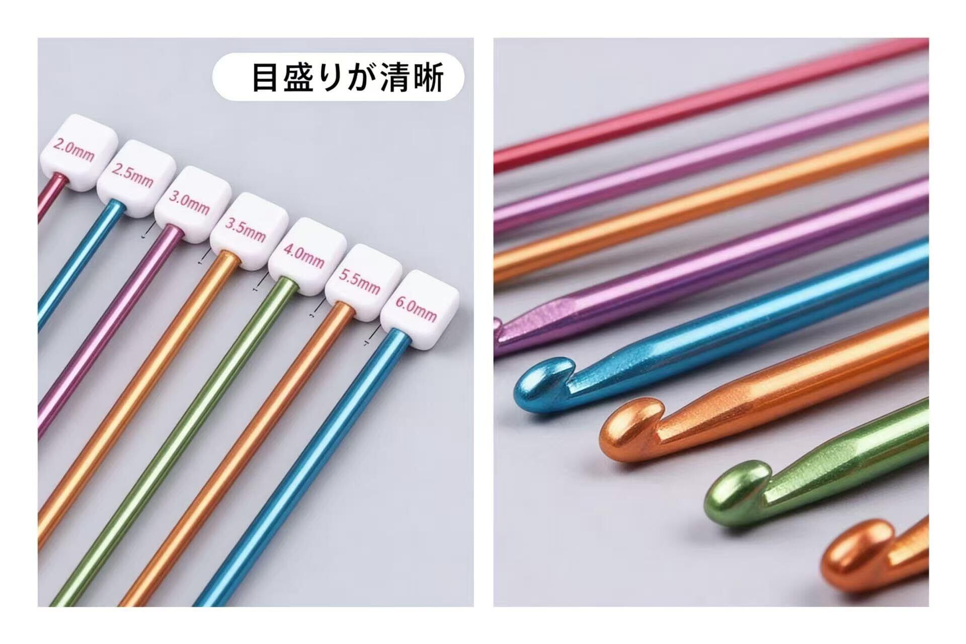 【高品質アルミニウム合金】軽量で耐久性に優れたアルミ素材を採用,針体滑らかで糸がスムーズに通る。長時間使用でも手が疲れにくく、針両端にサイズを明記して選びやすい。