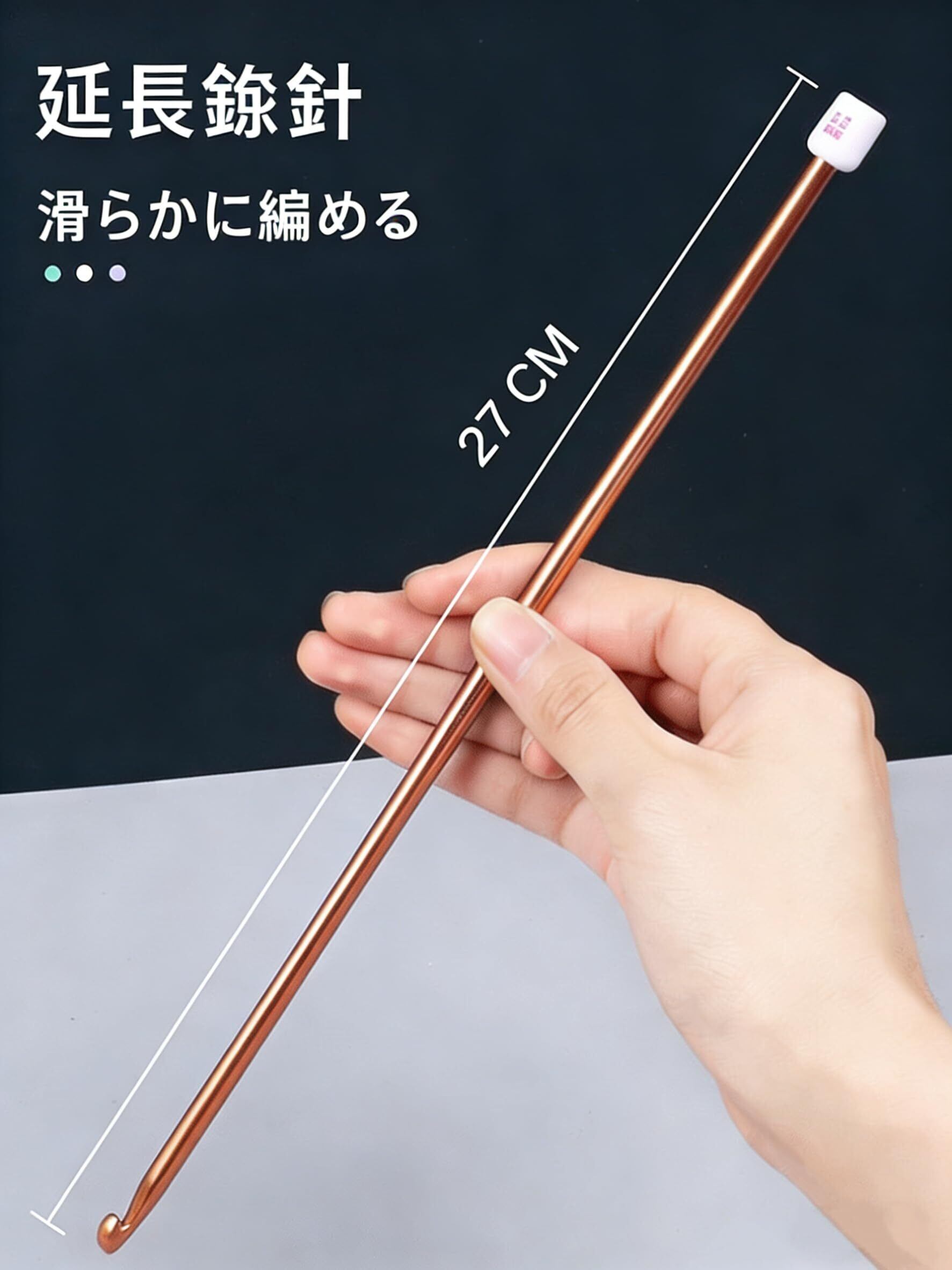 【編み物の新しい楽しみ、アフガン編みをこれ一セットで】 「かぎ針編み」の軽やかさと「棒針編み」の端正な編み目を掛け合わせた、独特の風合いが魅力のアフガン編み。本セットは、初心者の方から熟練のクリエイターの方まで、届いたその日から本格的な作品作りを楽しめる充実の25点セットです。27cmのロングサイズなので、マフラーや膝掛けなど、大きな作品もゆったりと編み進めることができます。 【こだわりの高品質アルミニウム合金】 針体には、軽量で耐久性に優れた高品質アルミニウム合金を採用しました。表面に滑らかな加工を施しているため、デリケートな毛糸も引っかかりにくく、スムーズな糸運びを実感いただけます。長時間使用しても手が疲れにくい設計で、日々の趣味の時間をより快適にサポートします。 【作業効率を格段にアップさせる工夫】一目でわかるサイズ刻印: 各針の両端にサイズが明記されており、作業中も迷わず必要な号数を選択できます。 糸を逃さない深溝設計: 針先は目を拾いやすい形状に仕上げ、深めの溝が糸の脱落を防ぎます。初心者の方でもリズム良く編み進められます。 充実の付属品: 編み目の位置を確認する「段数マーカー」10個と、仕上げに不可欠な「綴じ針」4本を同梱。別途買い足す必要はありません。 【商品仕様】セット内容: アフガン針 11本、段数マーカー 10個、綴じ針 4本 対応サイズ: 2.0mm / 2.5mm / 3.0mm / 3.5mm / 4.0mm / 4.5mm / 5.0mm / 5.5mm / 6.0mm / 7.0mm / 8.0mm(全11サイズ) 針の長さ: 約27cm素材: 高品質アルミニウム合金 【よくあるご質問 (FAQ)】 Q:初心者ですが、どのサイズから始めれば良いですか? A:一般的にマフラーなどには5.0mm〜6.0mm前後が使いやすくおすすめです。本セットは全サイズ揃っているため、毛糸の太さに合わせて最適なものをお選びいただけます。