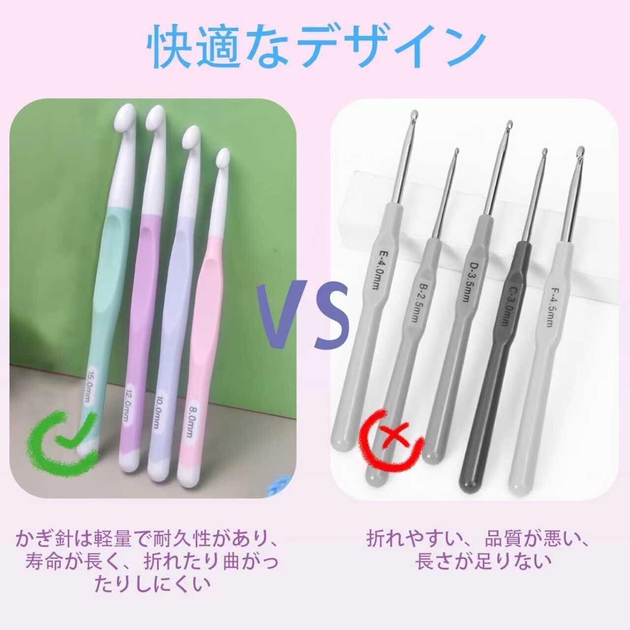 滑らかなABSフック: 鉤針の先端は滑らかで丸みのあるABS素材を使用。糸を引っ掛けにくく、編み物がスムーズに行えます。軽量で耐久性も抜群です。