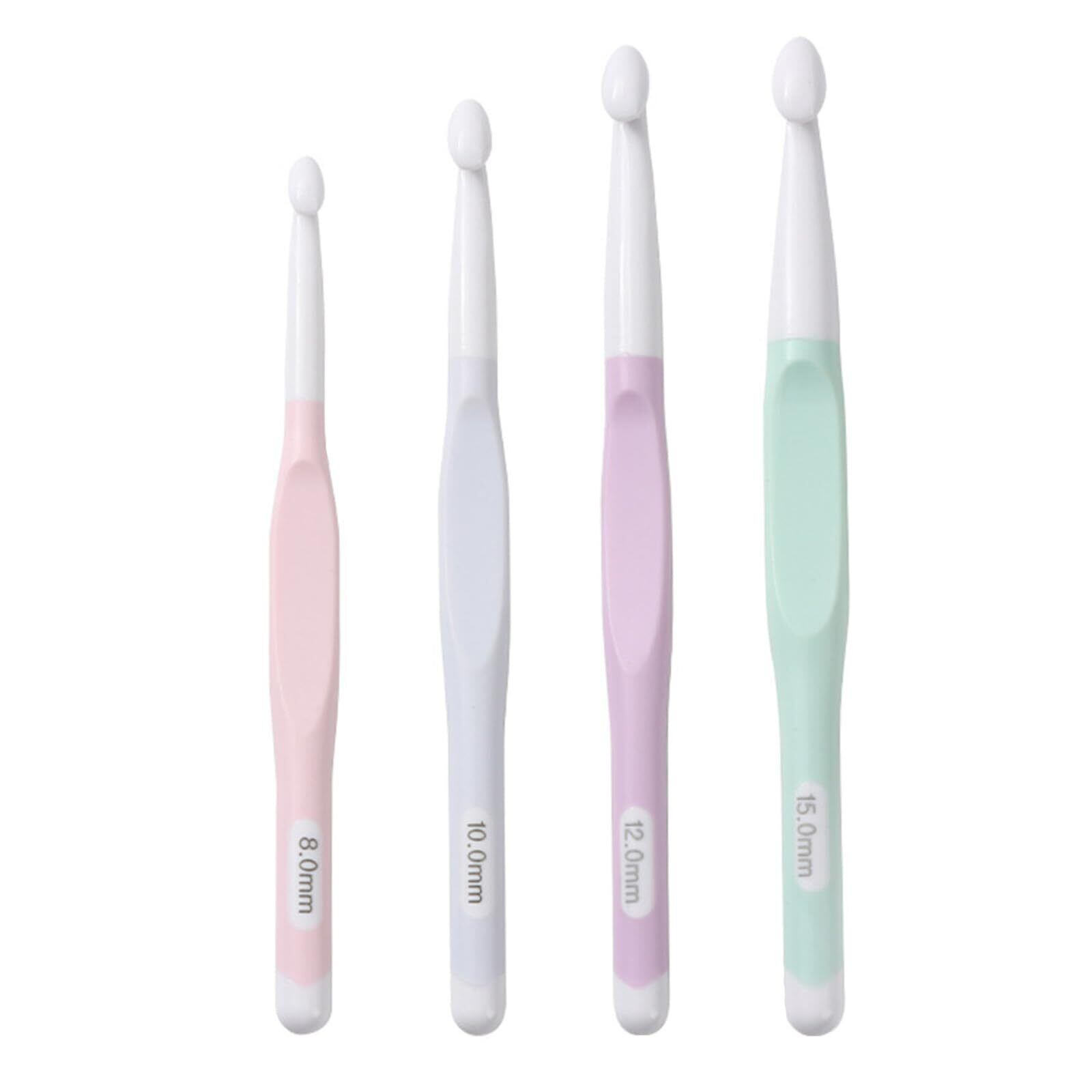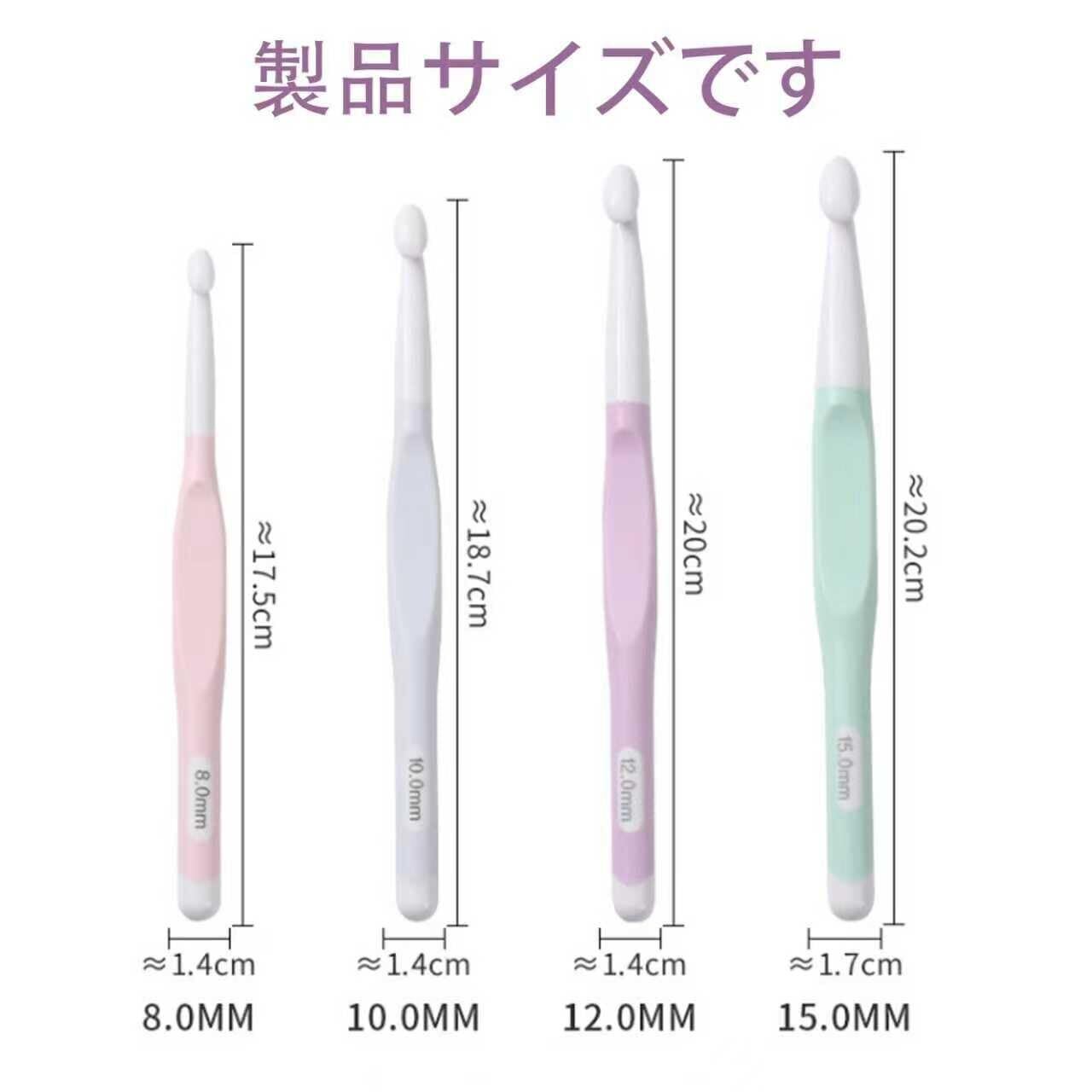 多様なサイズ: 8mm、10mm、12mm、15mmの4種類のかぎ針がセットになっています。さまざまなニーズに対応し、幅広い作品制作に最適です。