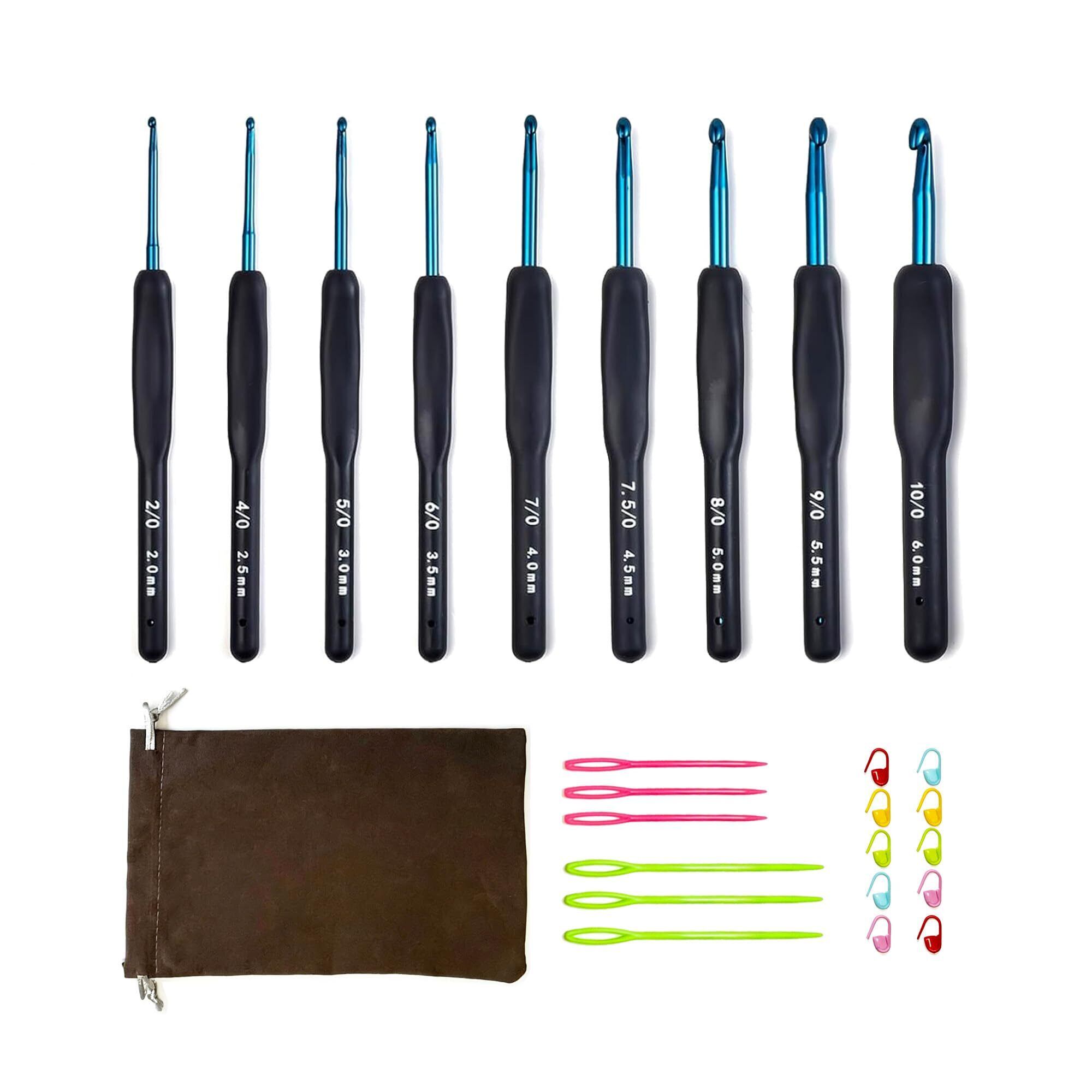 かぎ針 セット 9本 編み物 かぎ針編み キット 初心者向け アルミ製 2.0mm〜6.0mm 収納袋付き マーカー付き Nomli (ネイビー)