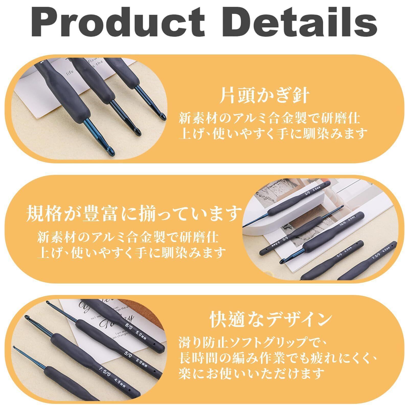 【疲れにくい持ち心地】握り部分は人間工学に基づいた柔らかなラバーグリップを採用。長時間の作業でも手が痛くなりにくく、編み心地に集中できます。関節が気になる方や、初心者の方にもおすすめの設計です。