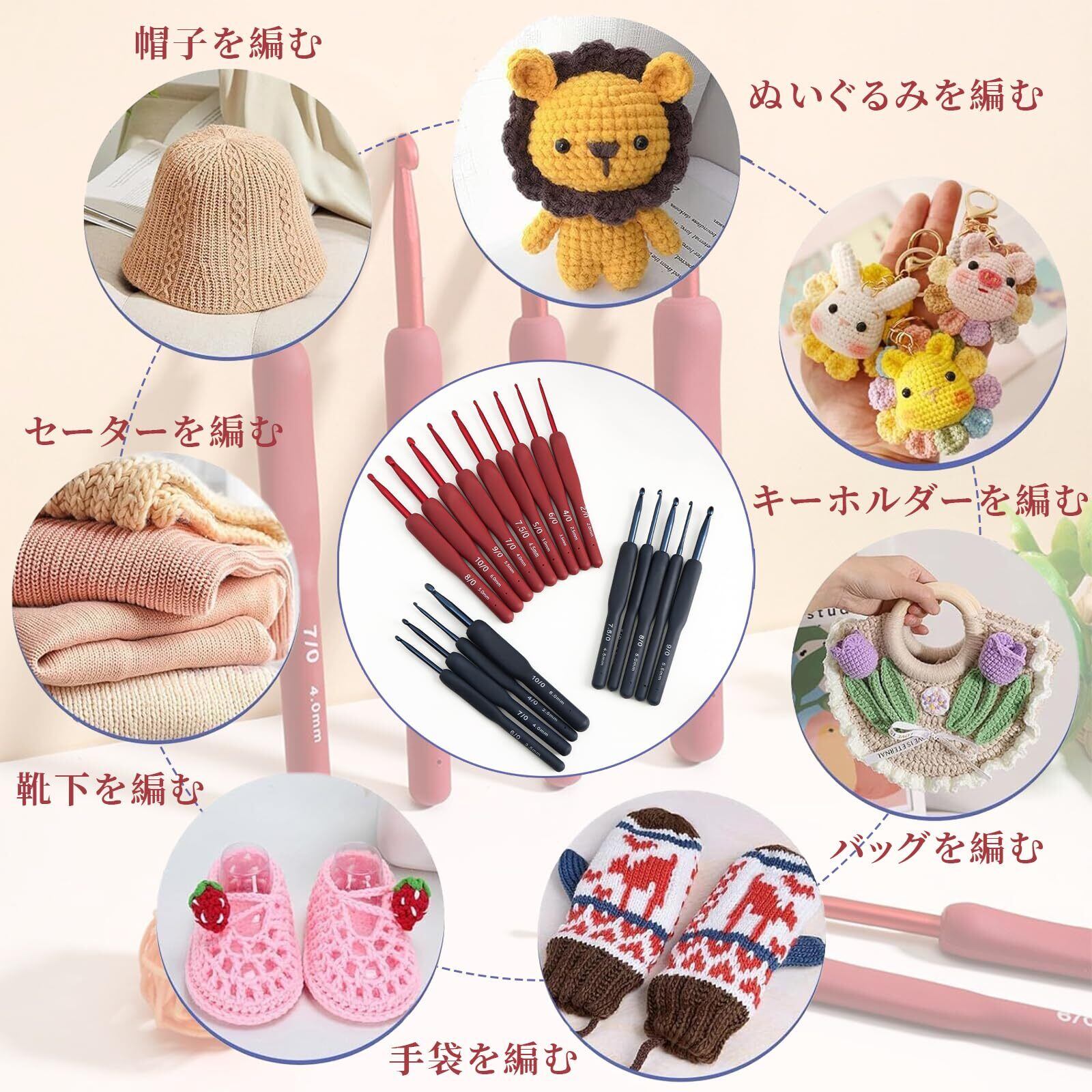 【幅広い作品作りをサポート】セット内の多サイズのかぎ針で、マフラーや帽子からセーター、小物、アクセサリーまで、様々な編み物プロジェクトに対応。初心者からベテランの方まで、お好みのアイテムを自由にお作りいただけます。