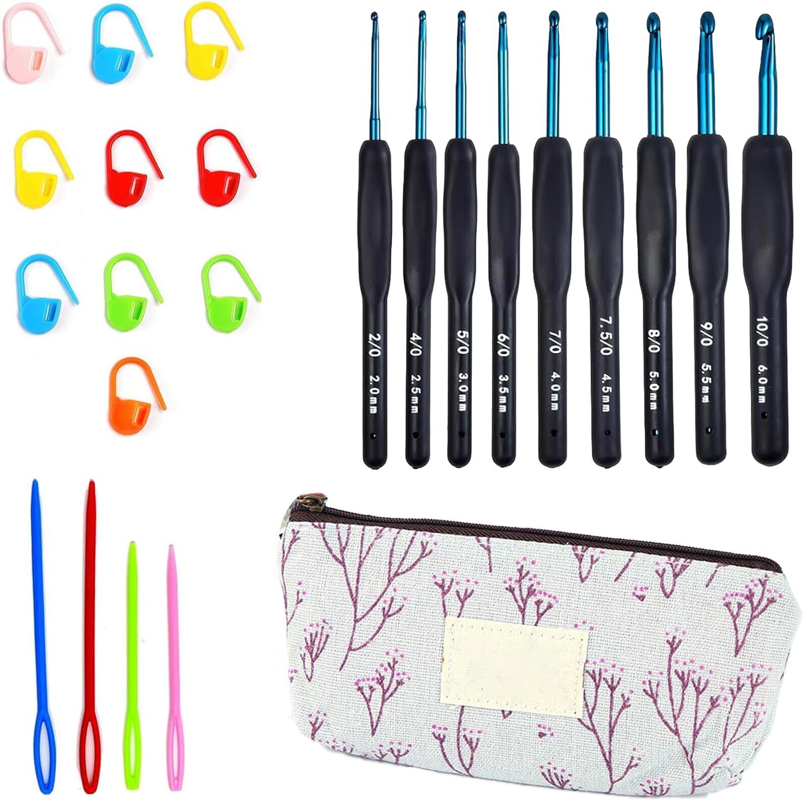 【特価セール】OTIMORA かぎ針 編み針セット 24点 初心者向け 9本フルセット 編み物道具 携帯ケース付き 小物付き 基本入門キット マフラー 帽子 セーター 手作り DIY 工具 (ネイビー)