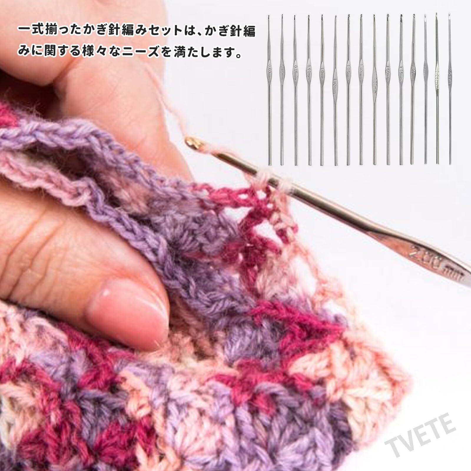 【あらゆるサイズに対応する15種類のかぎ針】:0.6mmから2.5mmまで、15種類のかぎ針がセットになっており、細編みから中太糸を使った編み物まで、あらゆるニーズに対応します。レース編み、かぎ針人形、スカーフ、コースター、ホームデコレーションなど、どんな作品にもぴったりのツールが見つかります。
