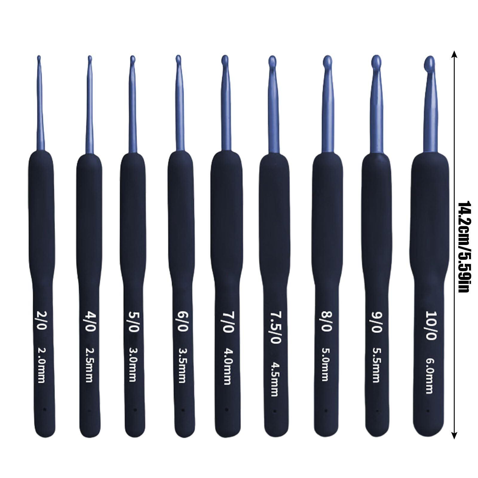 【9本かぎ針セット】9種類のかぎ針サイズ:2.0mm、2.5mm、3.0mm、3.5mm、4.0mm、4.5mm、5.0mm、5.5mm、6.0mm。