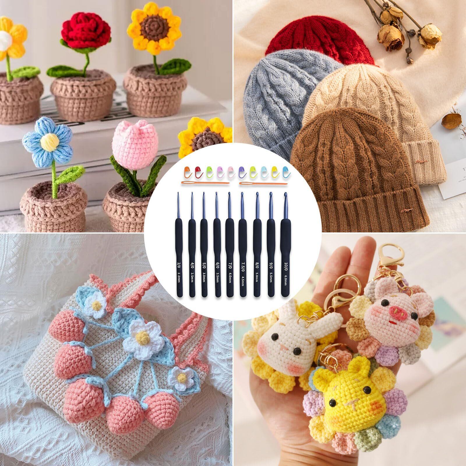 【大容量】このセットには、編み物の初心者のニーズを満たすさまざまなスタイルがあります。かぎ針のハンドルには明確なサイズがあり、必要に応じて選択できます。段数マーカーは、パターンステッチの開始と終了、ステッチを増やす場所や減らす場所をマークするのに最適で、段数を確認して編み物をスムーズに行うことができます。縫い針はフェルト、糸、刺繍などの DIY クラフトに最適です。初心者にも最適です!