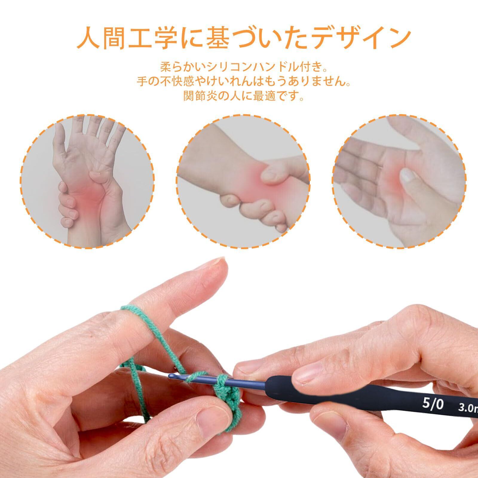 【持ち心地が良い】このかぎ針はゴム製のハンドルが付いており、太くて柔らかいので持ち心地が良く、長時間編んでも疲れません。針は高品質のアルミニウム素材で作られており、表面が滑らかで、織りが滑らかで使いやすいです。