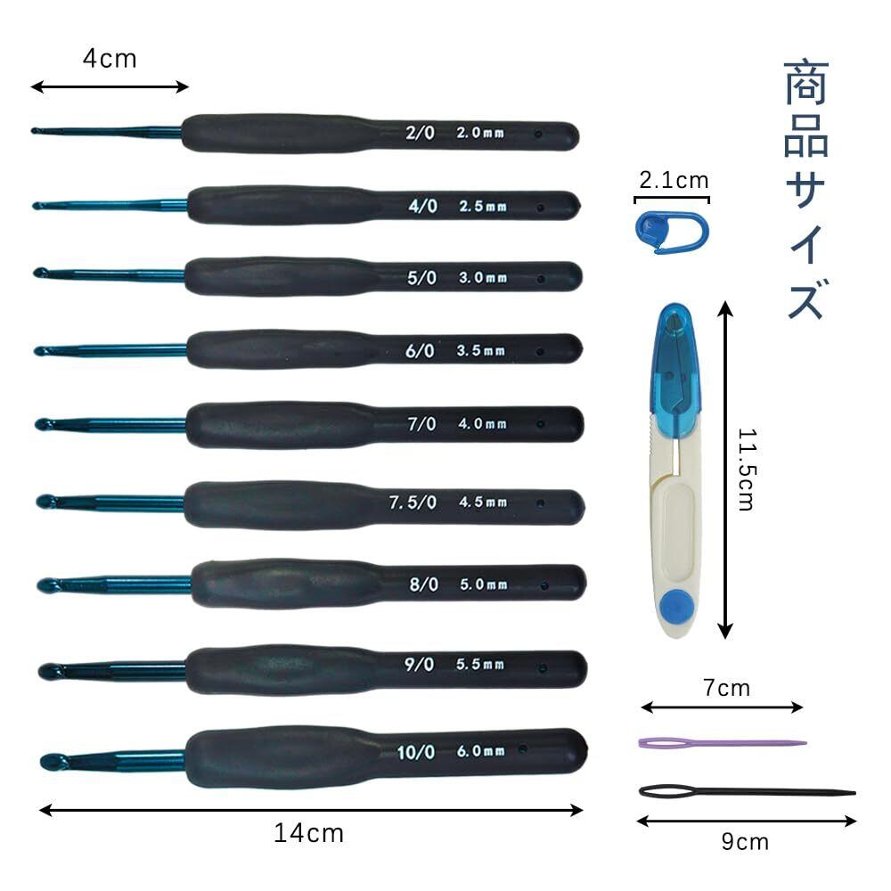 【2022最新】かぎ針編みキット かぎ針 9 本フルセット 初心者 DIY 工具 編み物手芸 基本入門キット 小物付き 糸カッター ポーチ 毛糸編み セーター マフラー マーキングバックル 24 点セット ネイビー