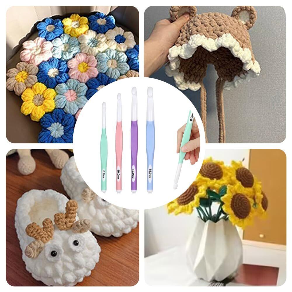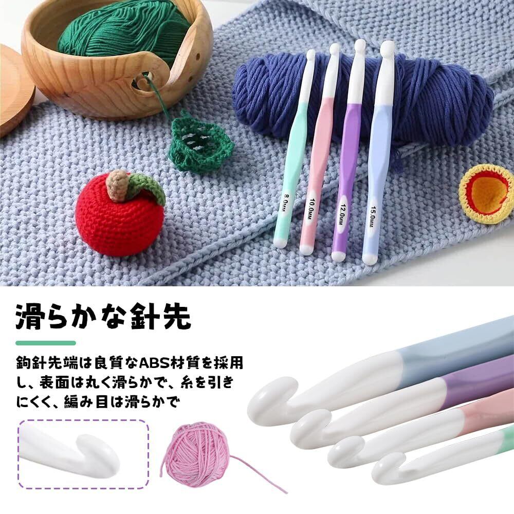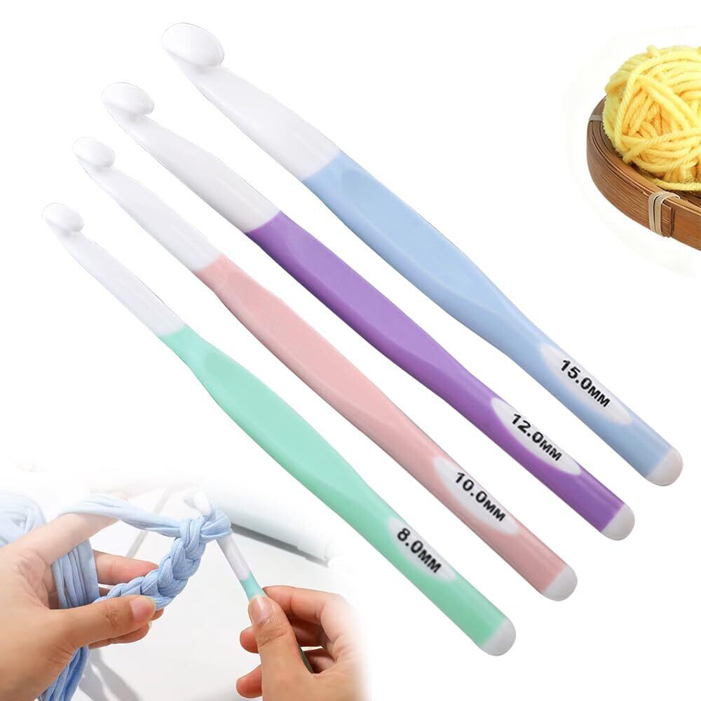 【新着商品】UrbanPulse かぎ針 ジャンボかぎ針 かぎ針編みフックセット 8mm 10mm 12mm 15mm 滑らか編み 快適グリップ 軽量設計 編み棒 毛糸編み針 TPRグリップ ABSフックヘッド 人間工学に基づいた 編み針セット 初心者向け 編み物道具 便利 実用的 DIY用品 4個セット
