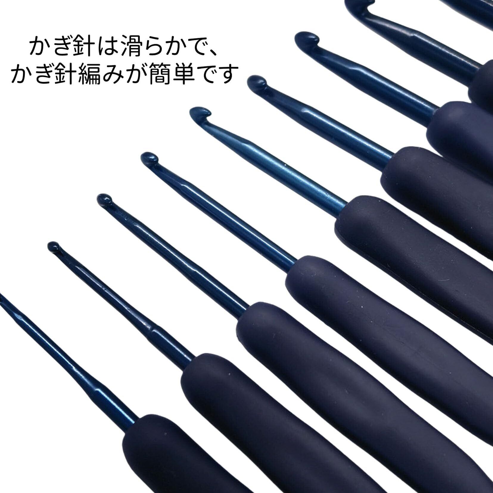 【在庫セール】Tibemi かぎ針 編み針 9本セット かぎ針セット 編み物 手芸基本入門キット 初心者用 シリコンハンドル 縫い針 毛糸針 裁縫道具 DIY工具 セーター マフラー 帽子 クラフト 手作り 小物付き-ネイビー