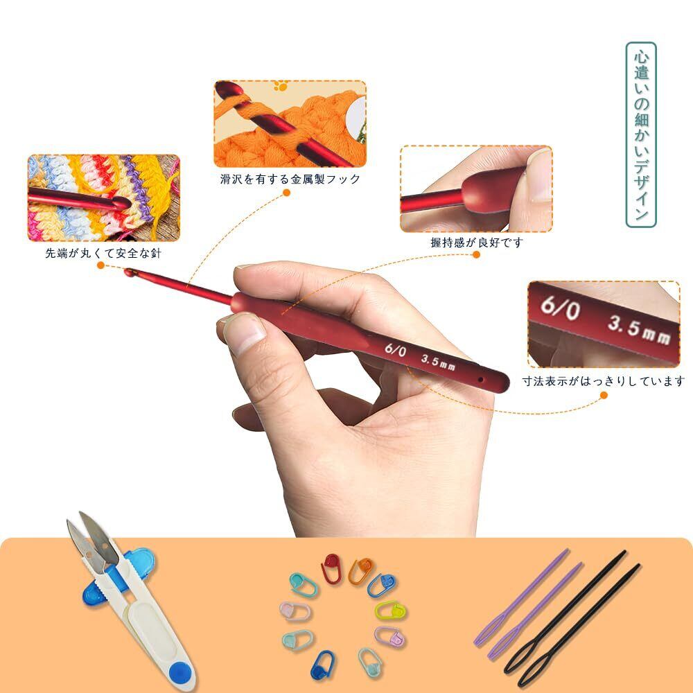 【心遣いの細かいデザイン】かぎ針のハンドルは多くがゴムで包まれたデザインで、握り心地がよく滑りにくく、長時間の編み物による手の疲れを軽減します。初心者と経験豊富な編み物愛好家の双方に応え、操作のハードルが低く専門性も充足しており、適用範囲が広いです。