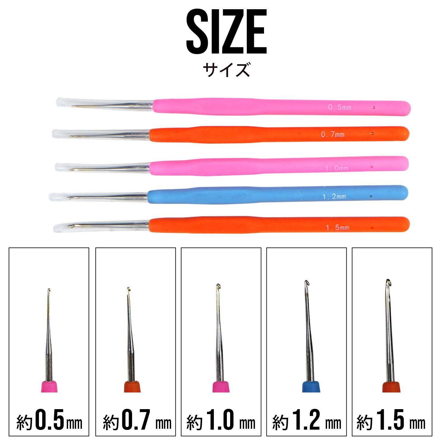 【2022最新】レース編み用 かぎ針セット 5本入り 編み針 細い レース針 手芸用品 ハンドメイド 編み物 きらきらぷんぷん丸 SGZ-001