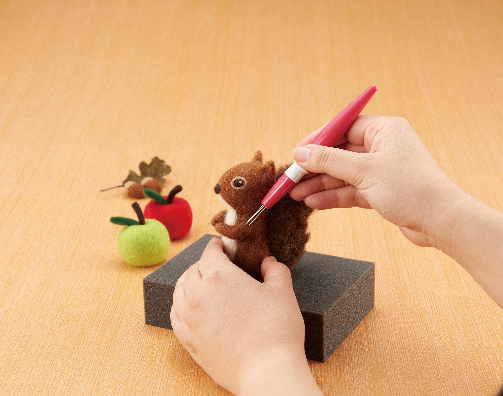 1本針は繊細な作業に、3本針は立体作品に、5本針は平面で広範囲のフェルティングに。