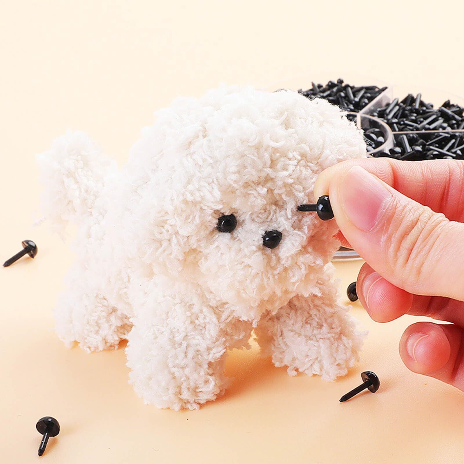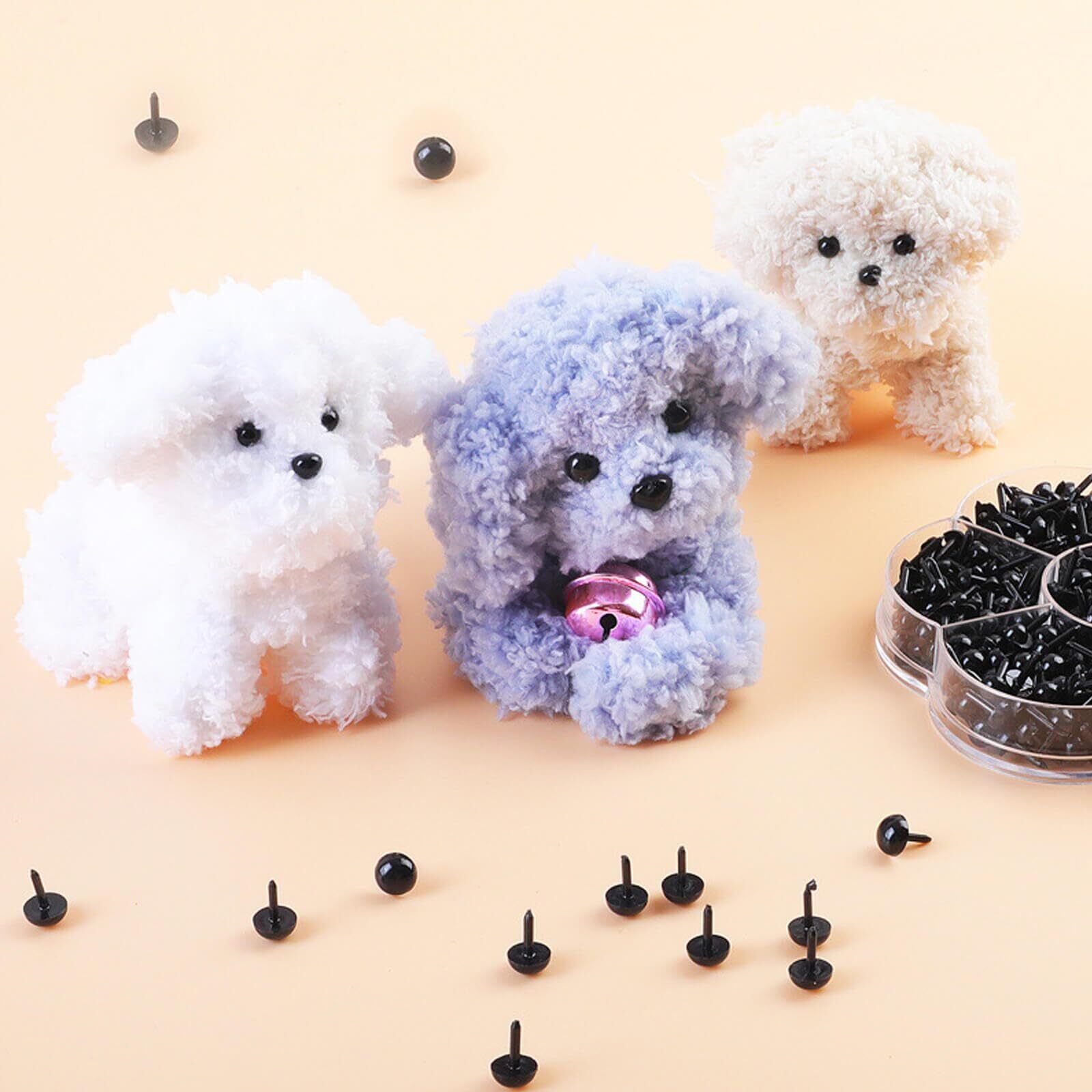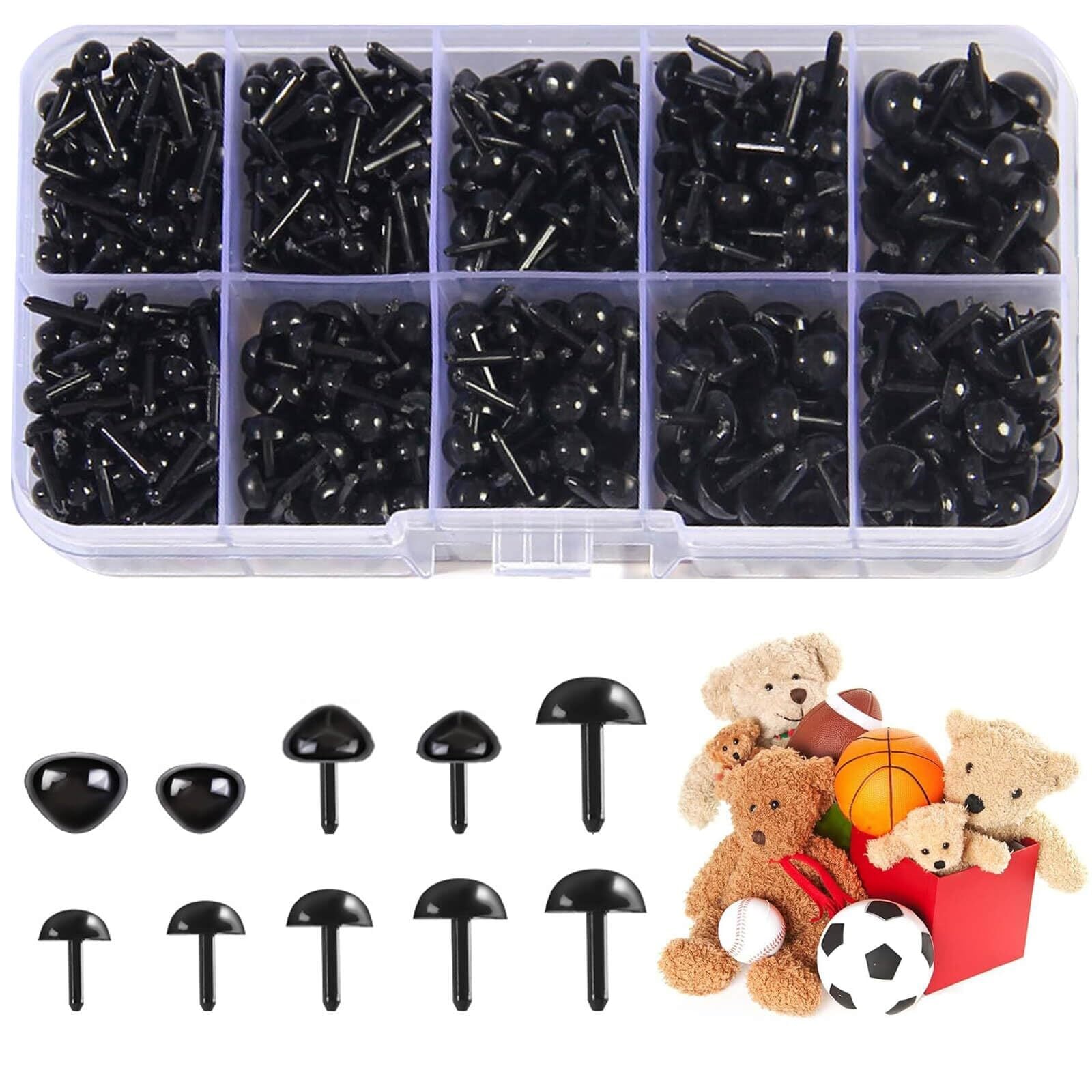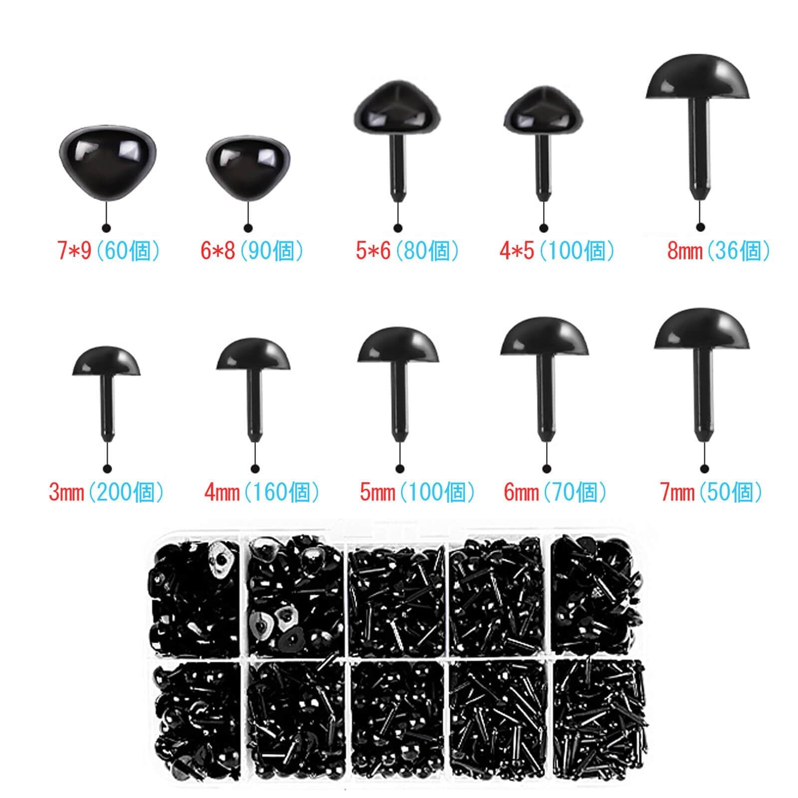 【仕様】サイズ:目は6種類の異なるサイズ(3mm、4mm、5mm、6mm、7mm、8mm)三角鼻は4種類の異なるサイズ(4*5mm、5*6mm、6*8mm、7*9mm) カラー:ブラック 包装内容:約1000個いり