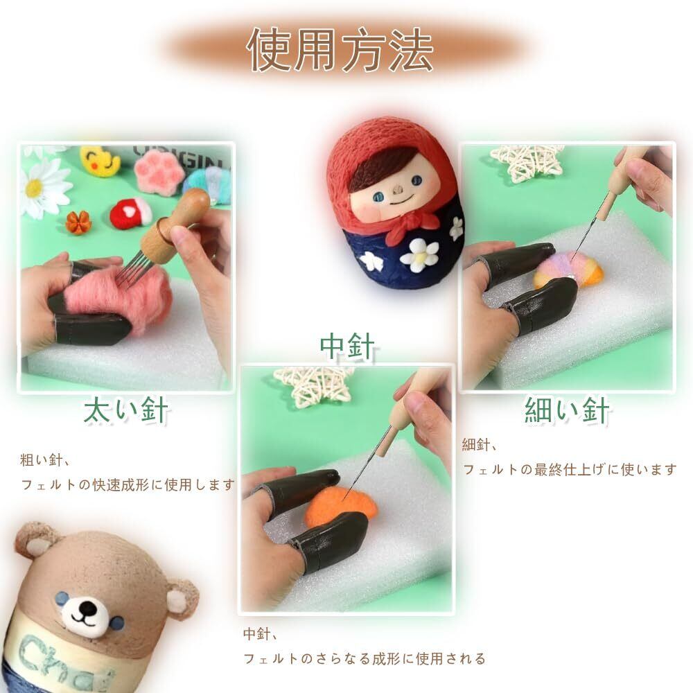 フェルトニードル針 セット 木製ハンドル付き 3サイズ対応 羊毛フェルト専用 初心者・プロ向け 手芸制作キット(指サック付属)
