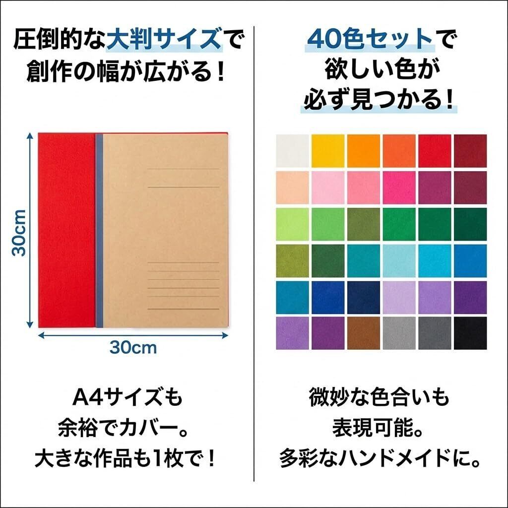 【数量限定】KINOKINO カラー フェルト 生地 不織布 シート クラフト フエルト マット (40色 40枚 30cm × 30cm 厚さ 1mm)