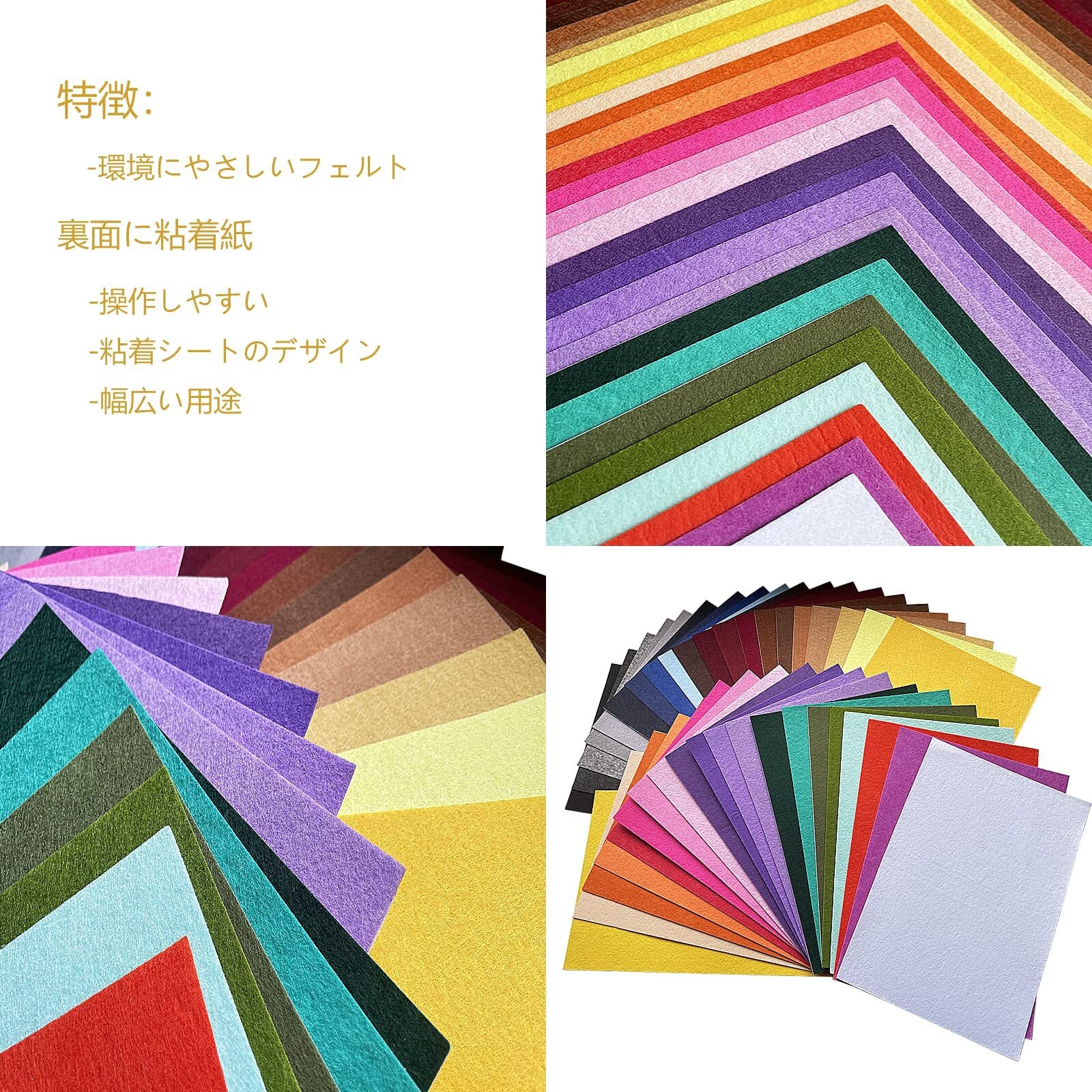 【2022最新】クラフト用粘着フェルト、フェルト シール、40カラー1mm厚い手作り素材20x30cm