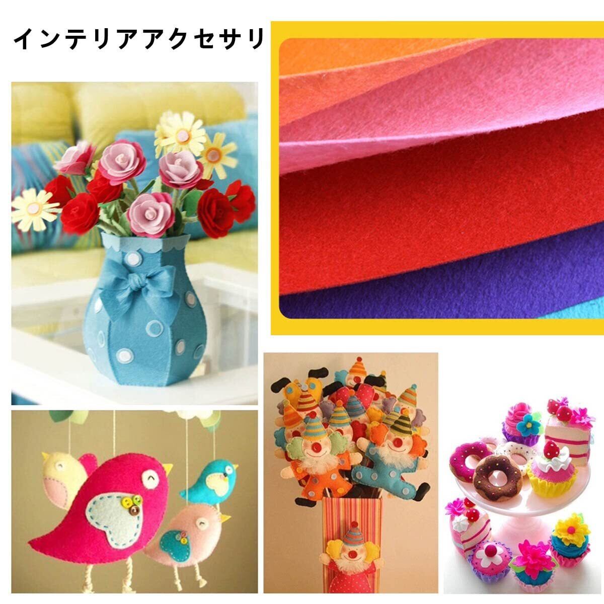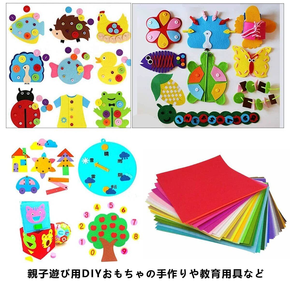 【使用範囲が広い】手作りギフト、ギフト包装、教育教材、パッチワーク、カップパッド、人形、財布、フォルダ、インテリアアクセサリー、掲示板の背景、DIY素材など、思いの違いにより、創意性と楽しさの溢れている手芸用カットフェルトです。