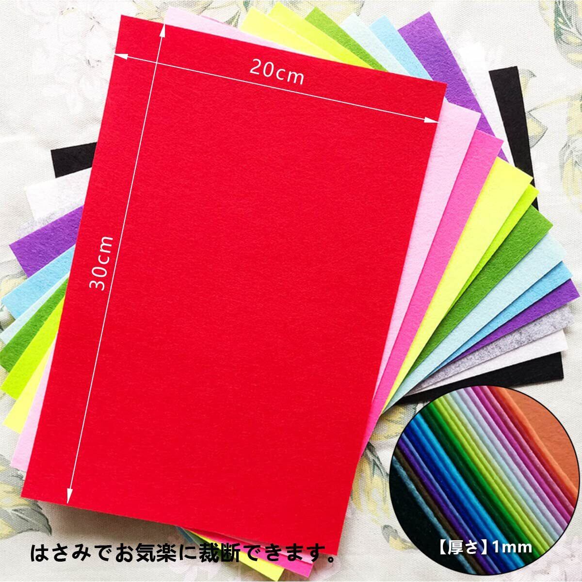 DJZLY カラーフェルト カラフル20色 20枚セット(20cm×30cm×厚み1mm) フェルト 生地 無地 クラフト DIY マスコット作り カラー豊富 手芸用 材料 幼稚園の装飾 手作り