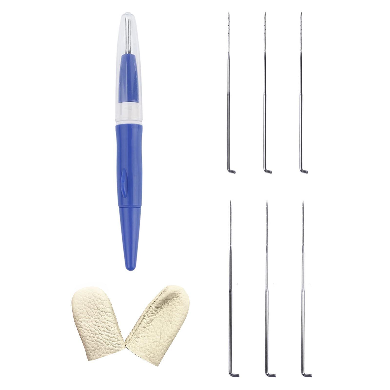 aninako 羊毛フェルト ニードル 3本針+レザー製指サック+2サイズのフェルト針付き 初心者入門キット フェルティングニードル 羊毛フェルト工具 刺繍フェルトニードル 手作り DIY用ツール (ブルー, F)
