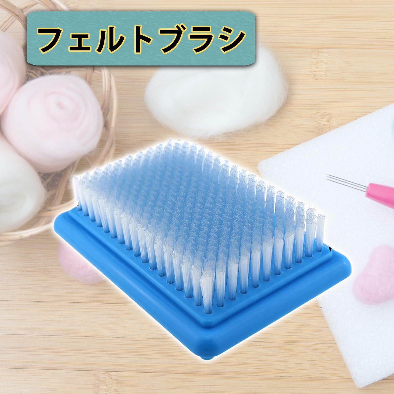 【弾力のある毛で自然な仕上がりに】毛丈約2.5cmのブラシが、針を優しく受け止めつつ弾力を保つ設計。羊毛がブラシの中に入り込みすぎず、ふんわり自然な質感をキープできます。大きめの作業面は安定性があり、細かい造形もズレにくい。繊細な手芸作品をきれいに仕上げたい方におすすめのブラシです。